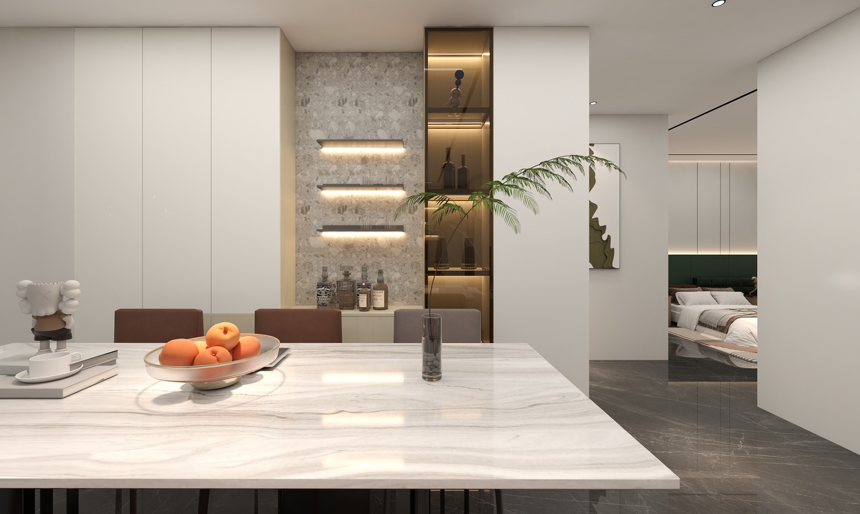 每個空間至少2張效果圖+1張全案全景圖展示,方案描述完整,所有空間需命名。