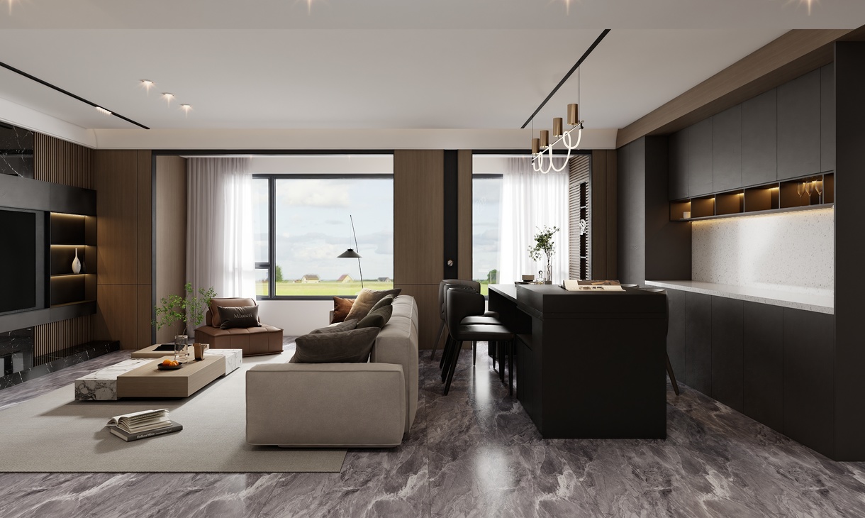 每個空間至少2張效果圖+1張全案全景圖展示,方案描述完整,所有空間需命名。
