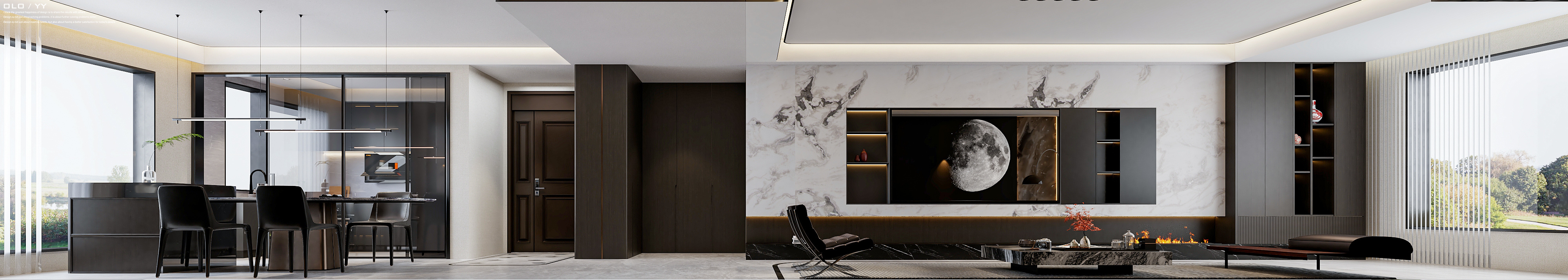 每個(gè)空間至少2張效果圖+1張全案全景圖展示,方案描述完整,所有空間需命名。