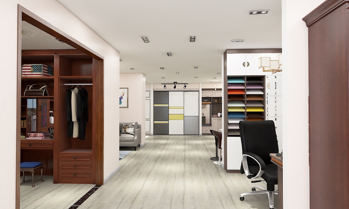 本方案是全屋定制家居展廳,客戶是全屋定制家具生產(chǎn)企業(yè),根據(jù)客戶空間方案設計出8大空間布局,臥室,客廳,衣帽間,榻榻米,設計區(qū),歐式廚房,現(xiàn)代廚房燈,推拉門展區(qū)。根據(jù)客戶要求設計出每個空間風格,達到空間的合理布局。8大空間所展示出簡歐,現(xiàn)代,北歐,新中式等定制家具。