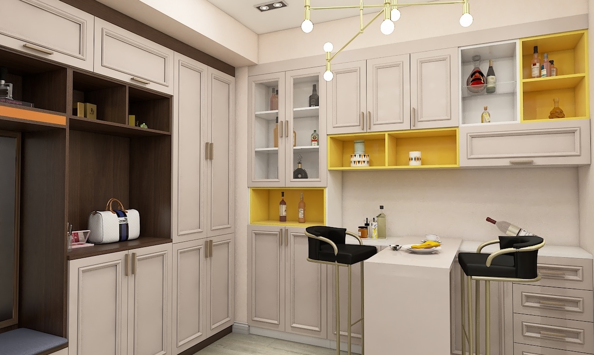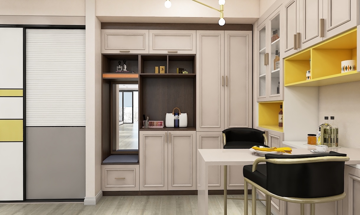 餐邊柜碗碟柜是放在餐廳空處或餐桌一邊具有收納功能的儲物柜,可以供放置碗碟筷、酒類、飲料類,以及臨時放湯和菜肴用,也可放置客人包小物件。