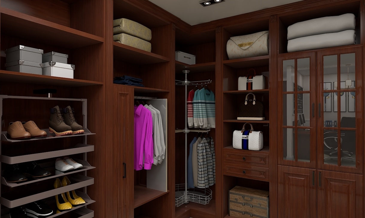 隨著人們生活質量不斷提高,幾乎每個人都擁有幾十件甚至更多的衣服,這些款式、質地不同的服裝的累積,人們開始對其進行分類收納,因此衣帽間正逐步成為每個家庭空間中不可或缺的一部分。 許多人認為衣帽間僅僅可存在于大空間內(nèi),其實不然,現(xiàn)代住宅設計中,經(jīng)常有凹入或突出的部分或者是三角區(qū)域,我們完全可以充分利用這些空間,根據(jù)業(yè)主的情況,規(guī)劃出一個衣帽間。家居中的衣帽間給人生活帶來許多便捷的同時還會使在衣帽間中更衣的人帶來愉悅的心情和自信,更可以成為家居設計中的亮點。每一個女人都渴望擁有自己獨立的衣帽間,每當瘋狂購物之后都能整齊條理地陳列擺放出來,可以說一個時尚得體的衣帽間,是我們精致生活的完美體現(xiàn)。