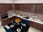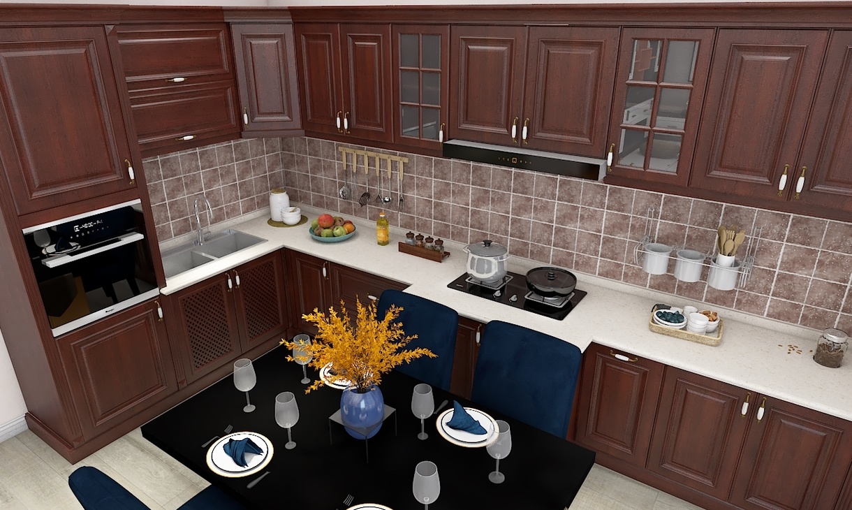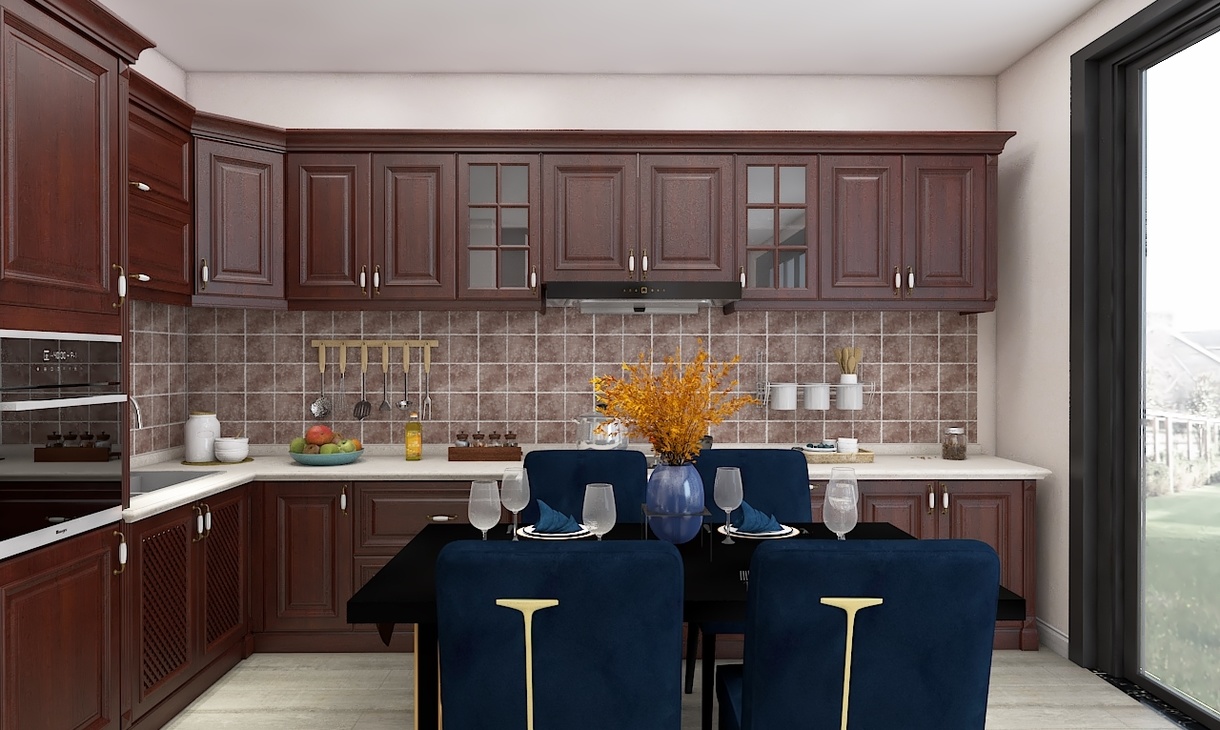 古典歐式廚房極其講究,給人的感覺端莊典雅、高貴華麗,具有濃厚的文化氣息。在家具選配上,一般采用寬大精美的家具,配以精致的雕刻,整體營造出一種華麗、高貴、溫馨的感覺。