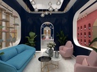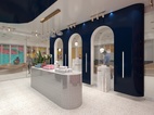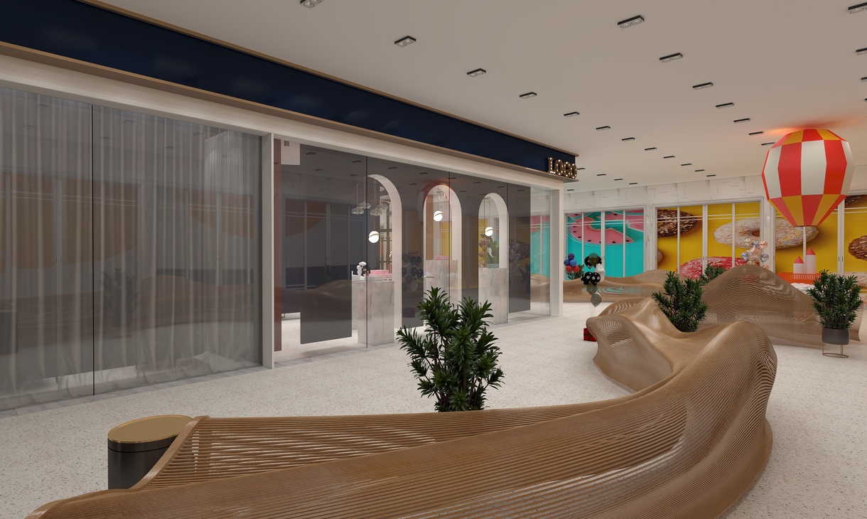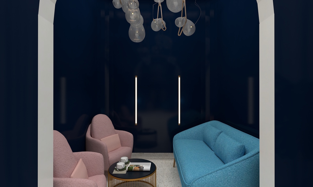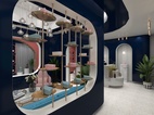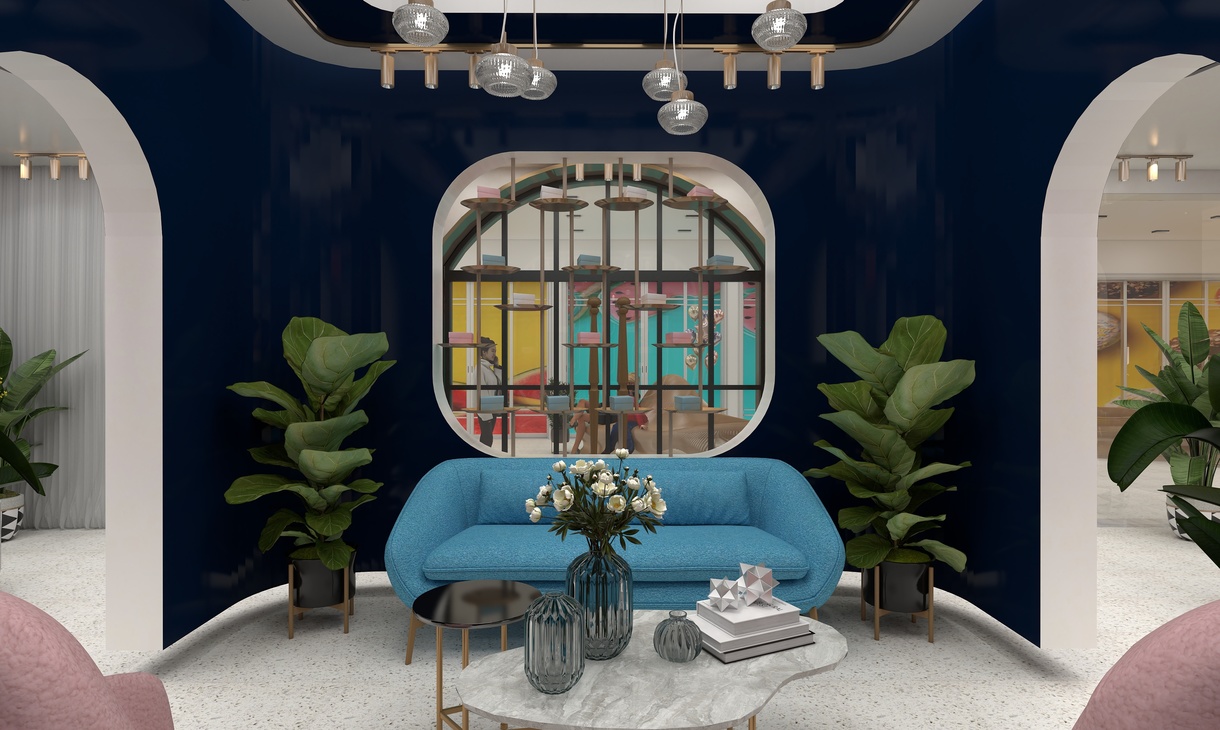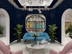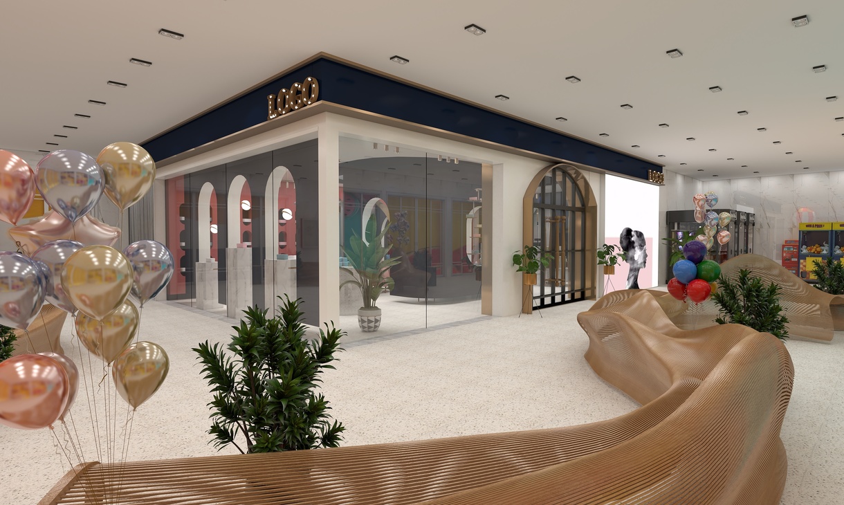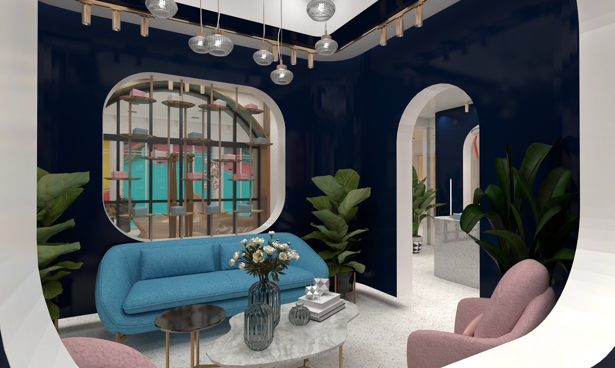 工裝案例,適合服裝店,高端食品店等高端類型店鋪。 設計初衷:以藏青色為底色,搭配粉色的少女風,與土豪金金屬材質(zhì)的碰撞,產(chǎn)生了視覺上的美感。讓人迷戀與向往。兩種顏色的撞擊,像是兩位戀人之間的愛情。完美的融合在一起。整體風格輕奢為主,適合各類型的店鋪。