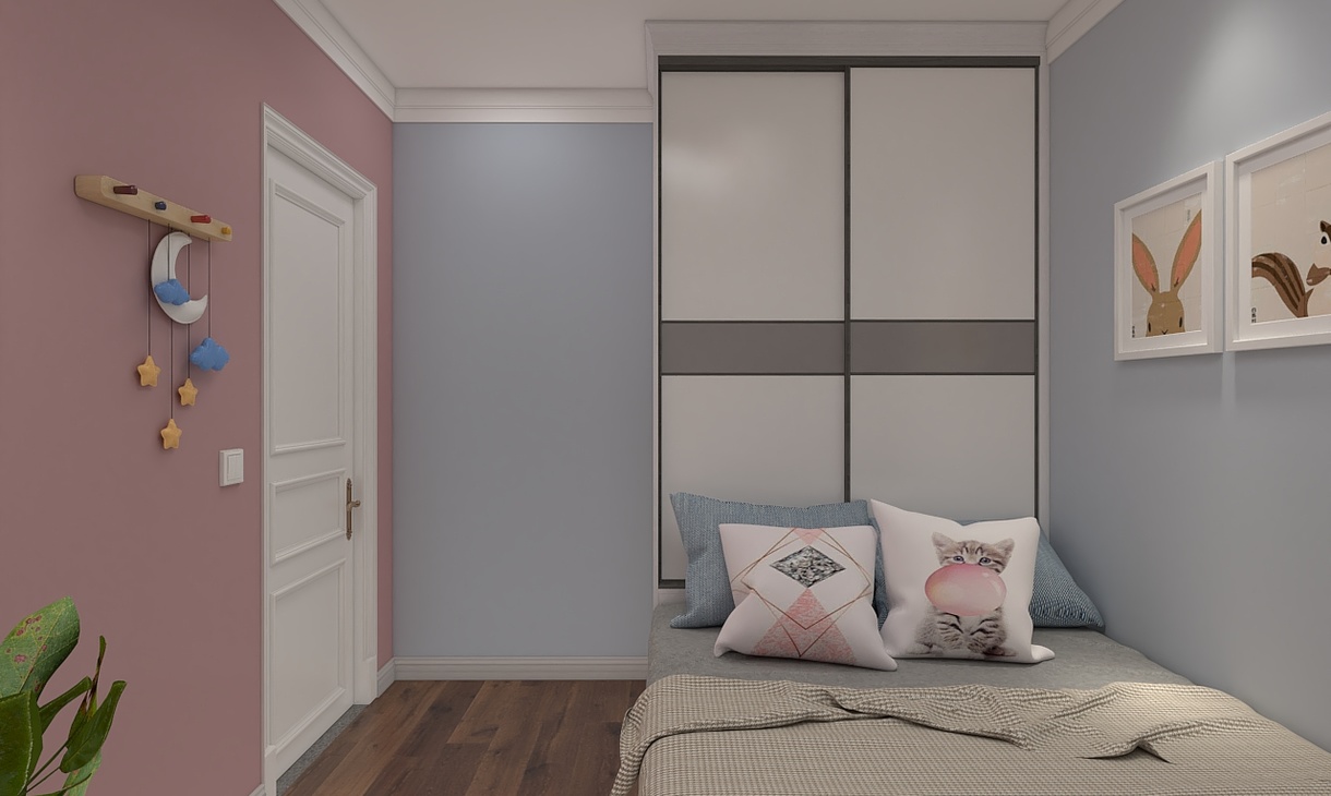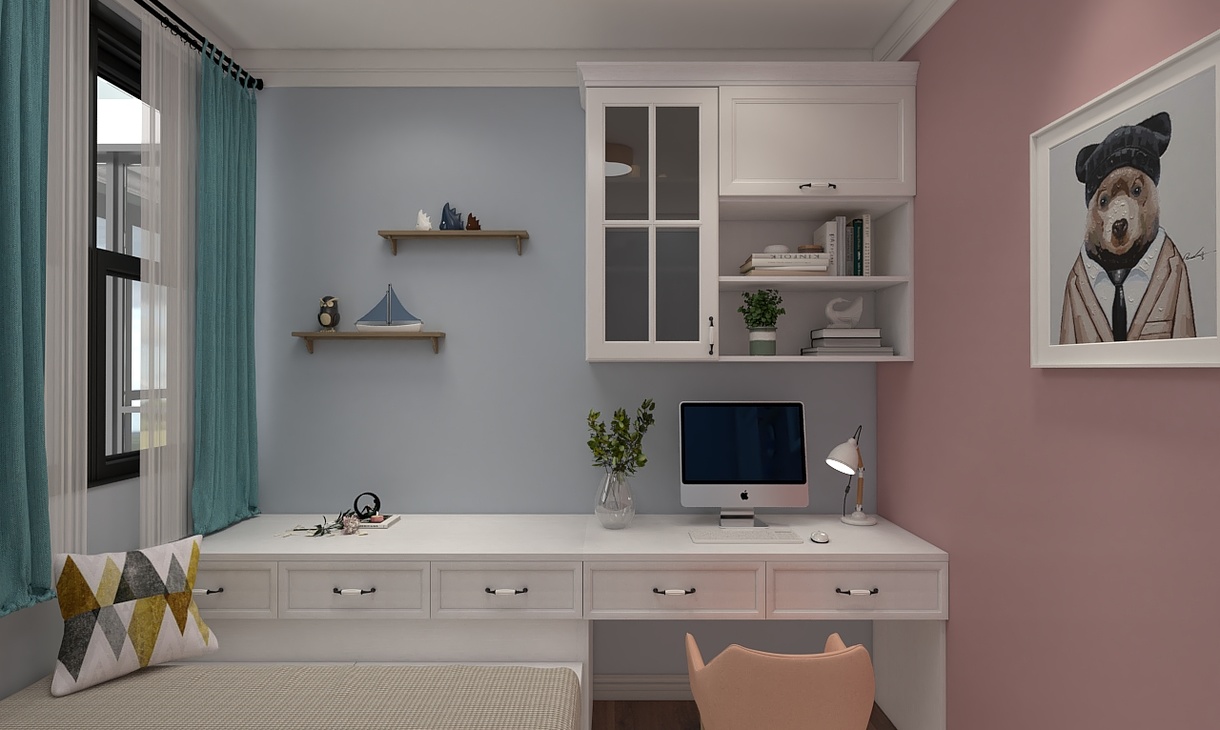 應(yīng)客戶需求在滿足客戶收納需求實(shí)現(xiàn)空間合理的布局,各空間銜接恰當(dāng),色彩采用白色、綠色、黃色、部分空間采用淡粉和淡藍(lán)營(yíng)造一種清新小美風(fēng)格。