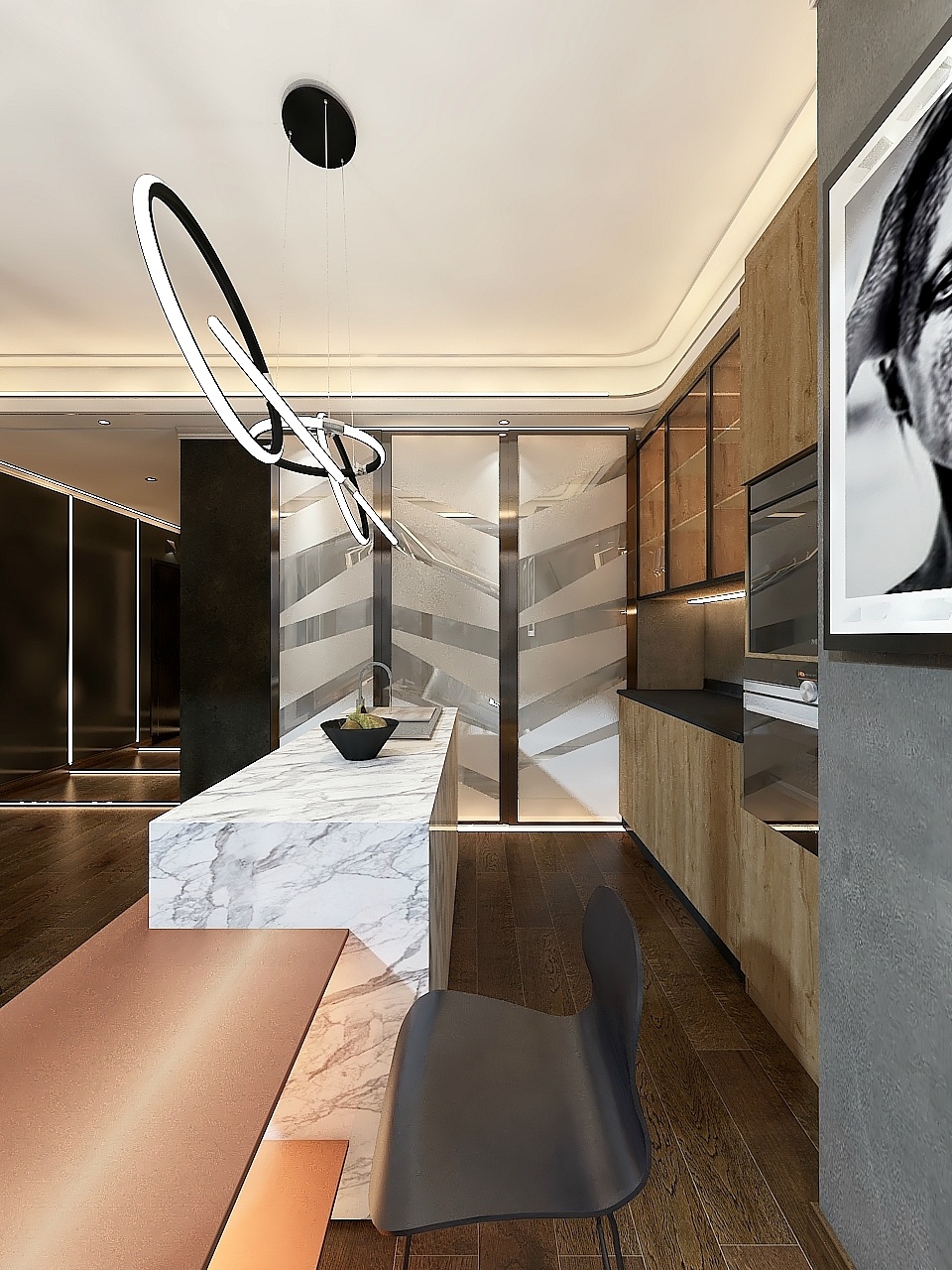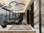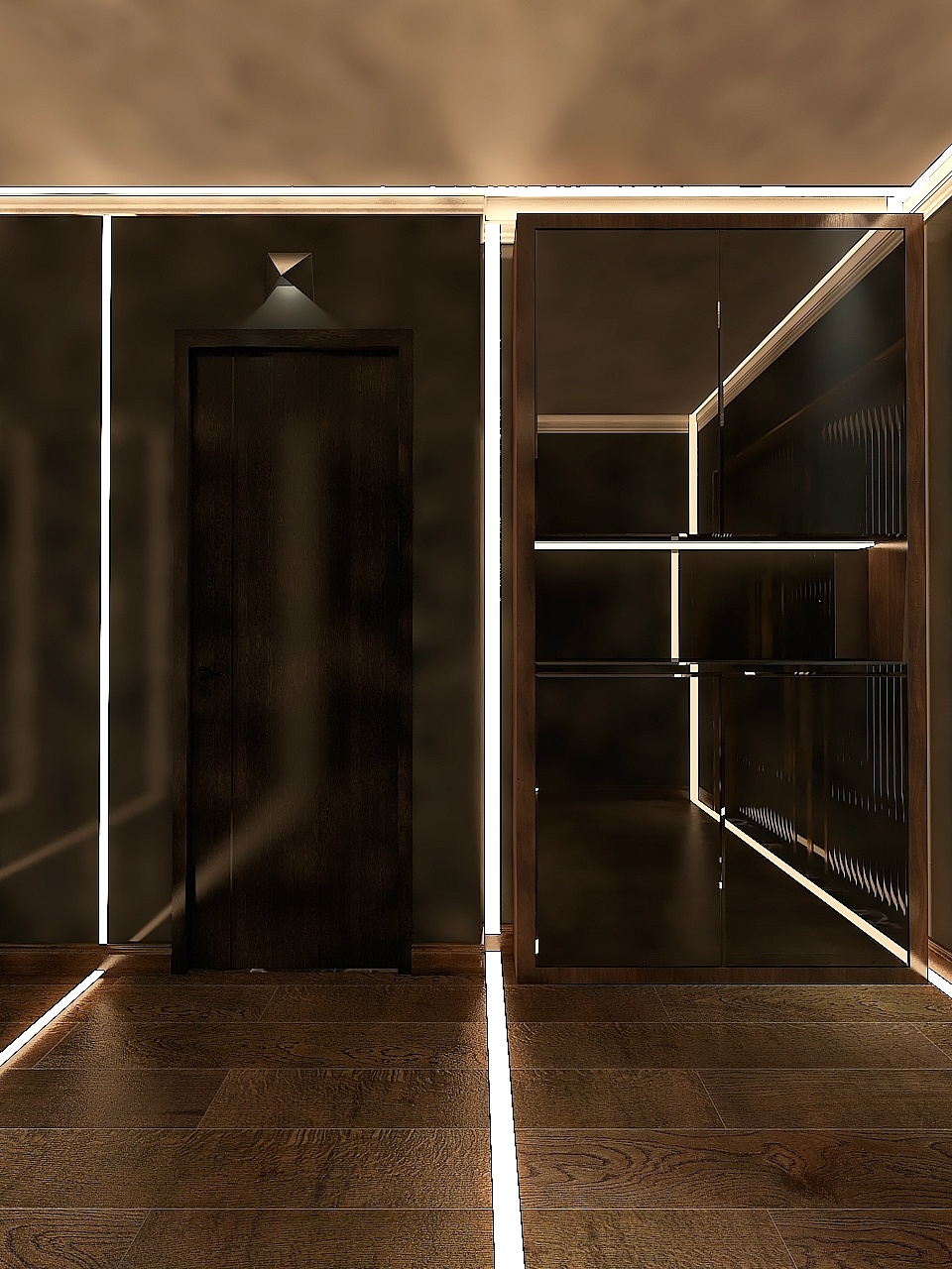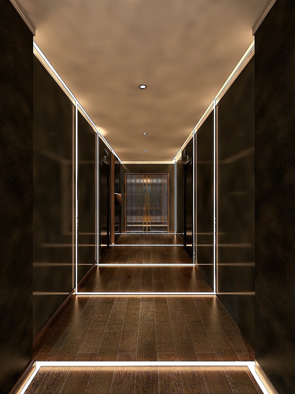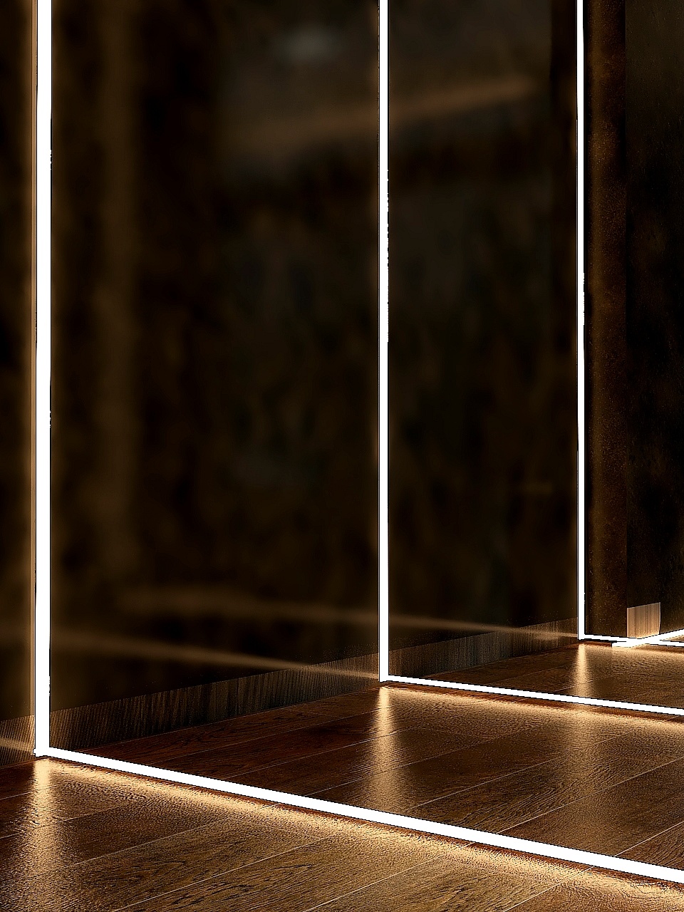 設(shè)計(jì)理念:利用明暗對(duì)比來(lái)呈現(xiàn)空間。暗藏?zé)魩Ч饩€從墻縫內(nèi)照出。形成燈帶群。遠(yuǎn)處看去是海景風(fēng)貌。就像從深處看遠(yuǎn)景的詩(shī)意。