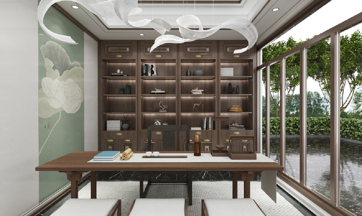新中式風格的書房,端莊素雅 適合情緒緊張的現(xiàn)代都市人。 中式風格所沉淀出的文化底蘊, 也最能體現(xiàn)在書房的設計上