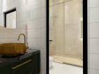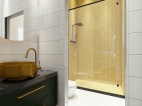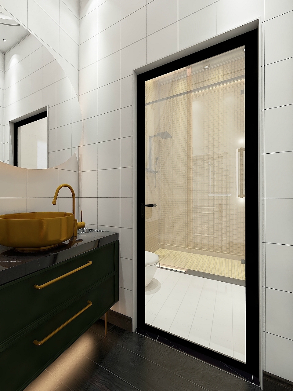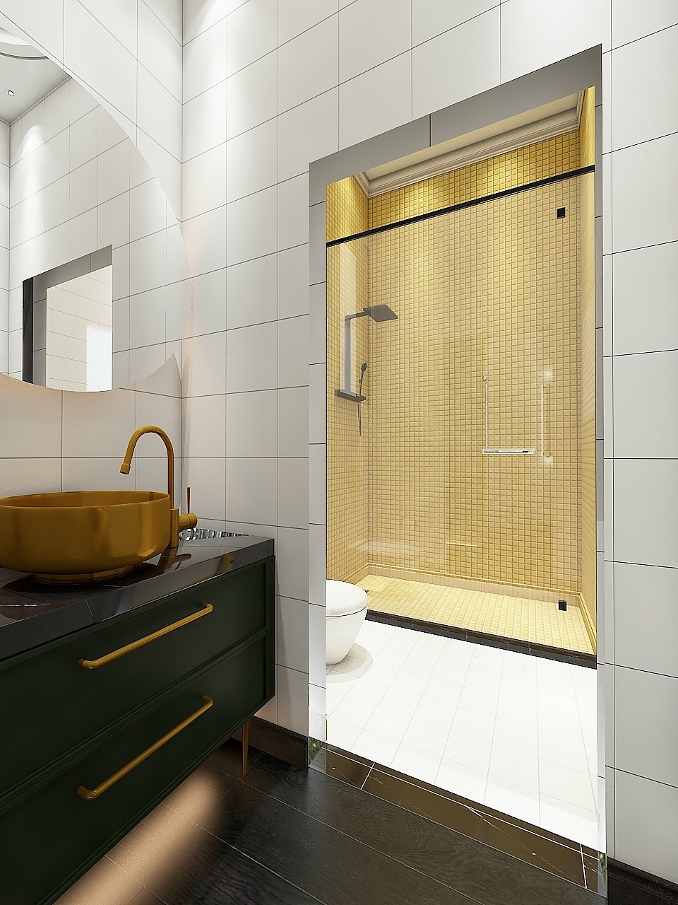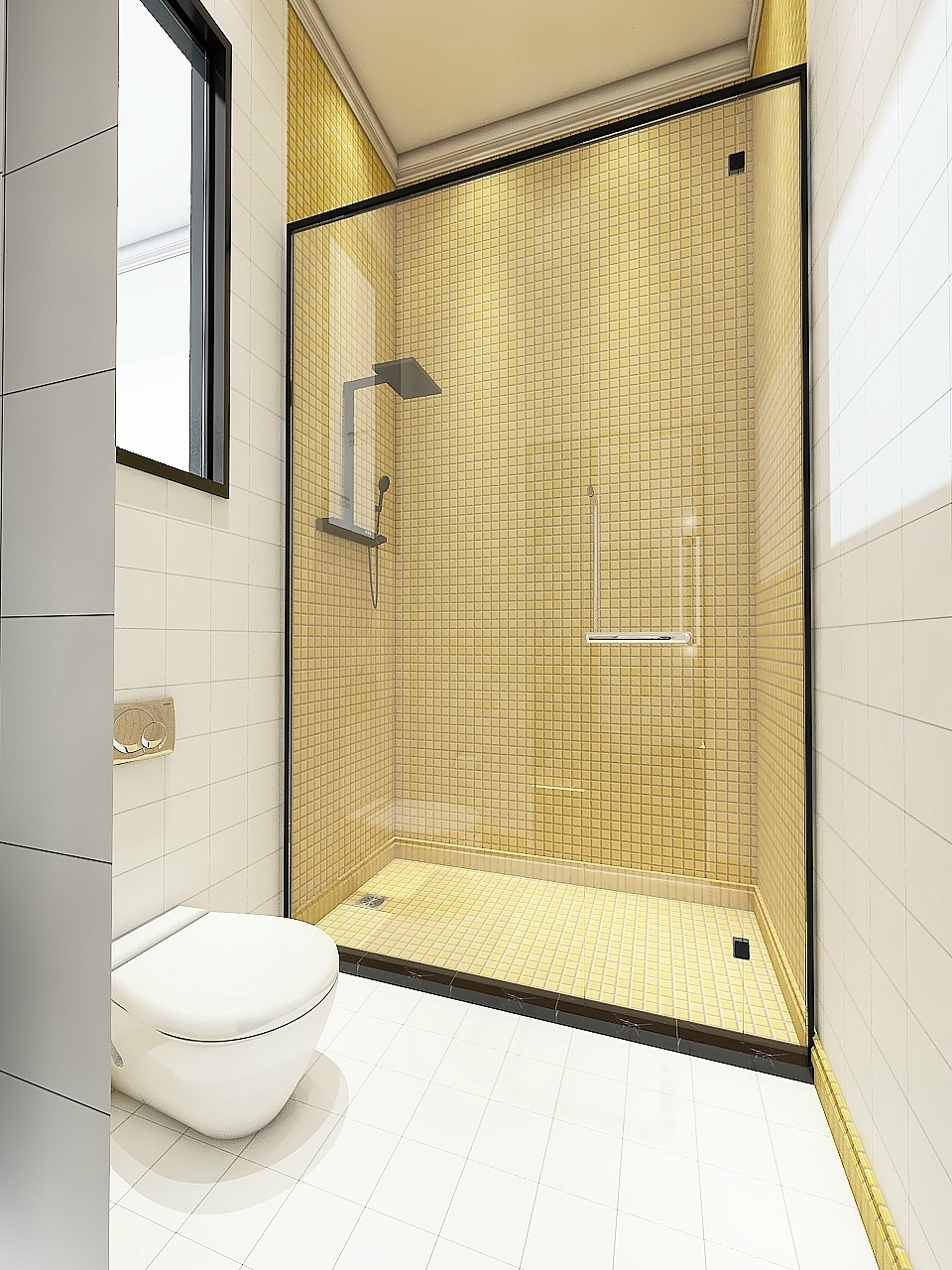 兒童房衛(wèi)生間墻面用黃色馬賽克做點(diǎn)亮的裝飾。
