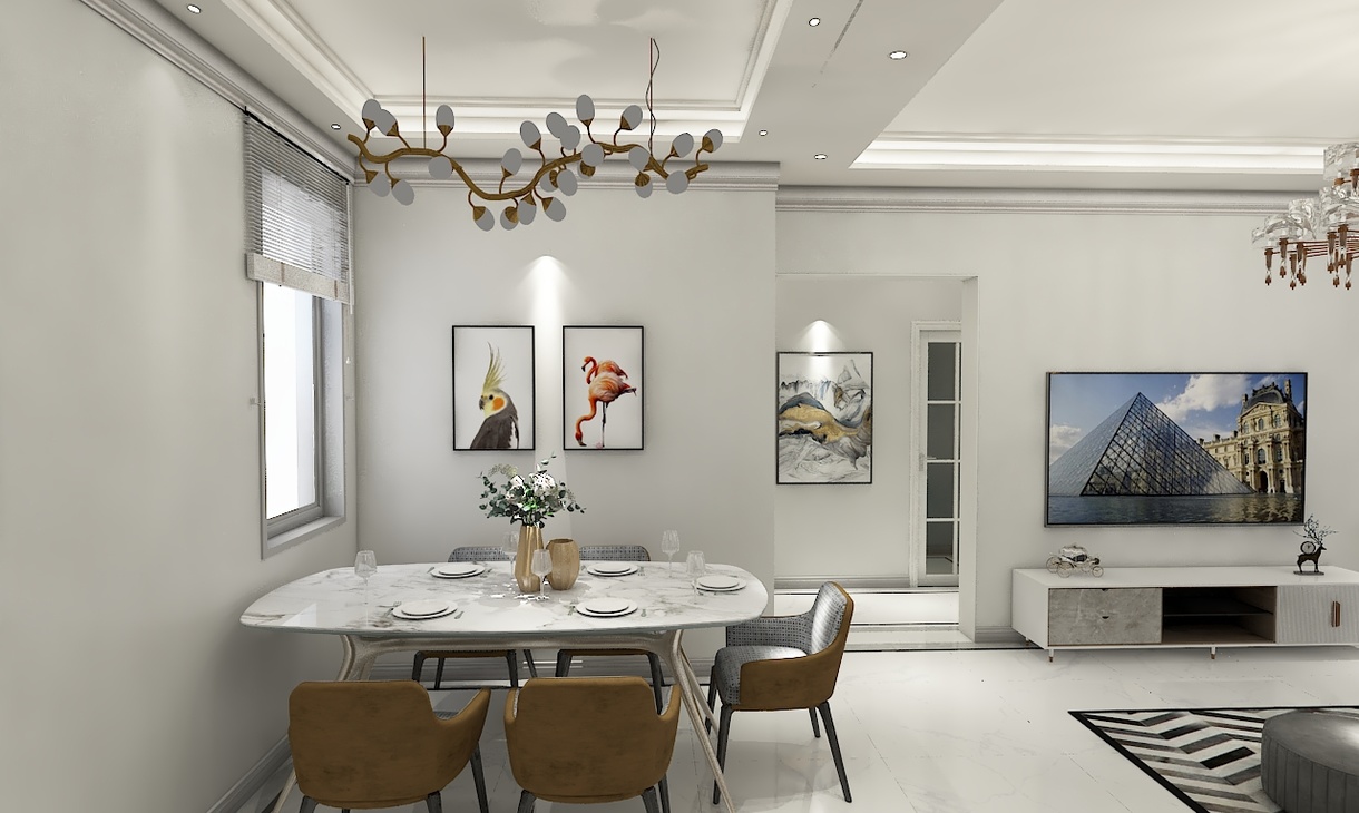 每個(gè)空間至少2張效果圖+1張全案全景圖展示,方案描述完整,所有空間需命名。