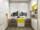 客餐廳一體,用柜體作為電視機(jī)背景墻,摒棄客廳放電視機(jī)的傳統(tǒng),改為使用投影儀,更加現(xiàn)代摩登符合當(dāng)代年輕人的生活方式