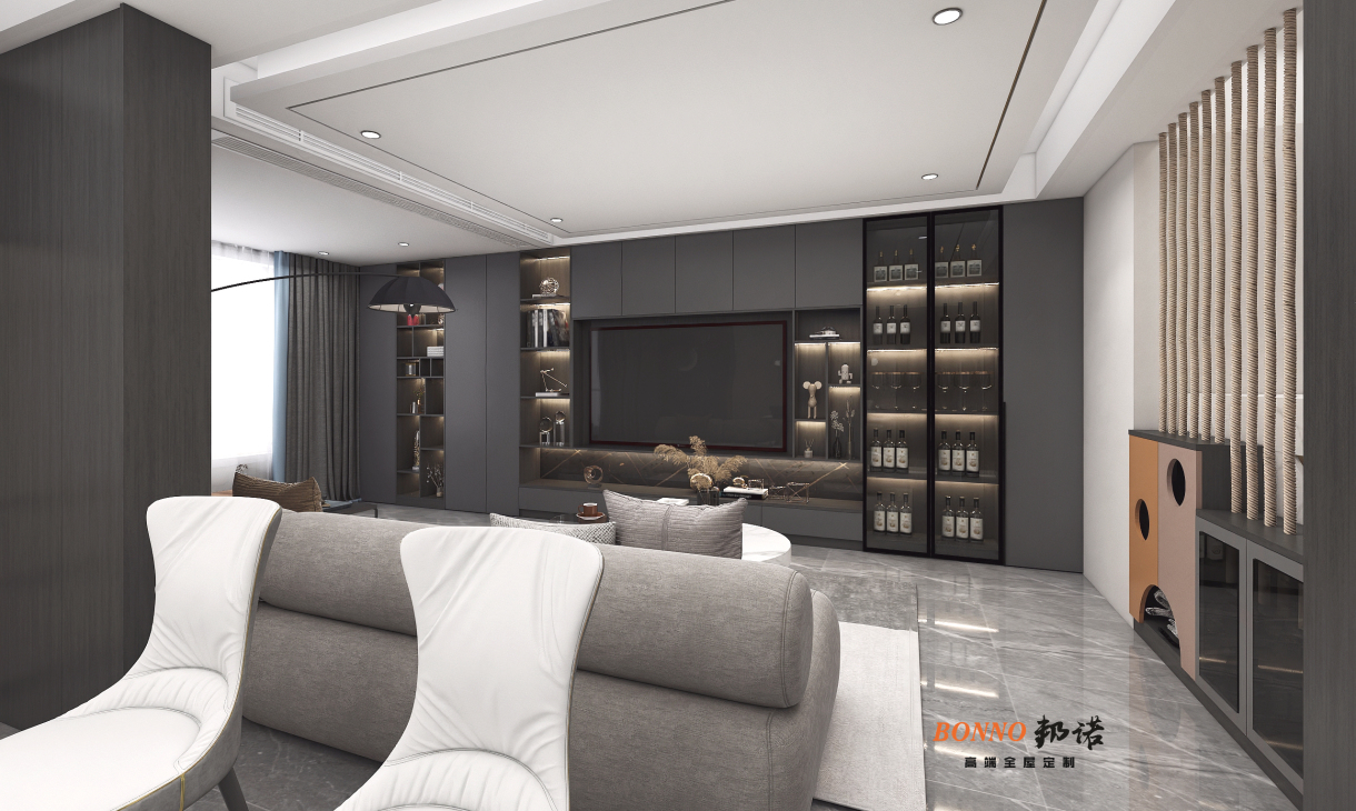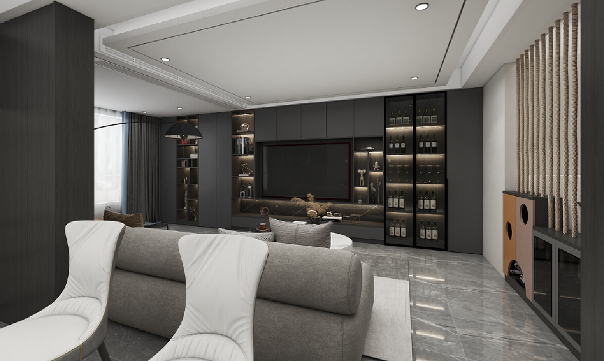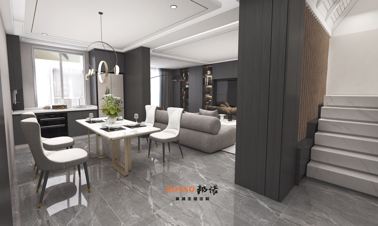 1.深色存托干凈整潔美感,以時(shí)尚藝術(shù)返璞歸真,襄陽(yáng)邦諾設(shè)計(jì)工作室-江景華府