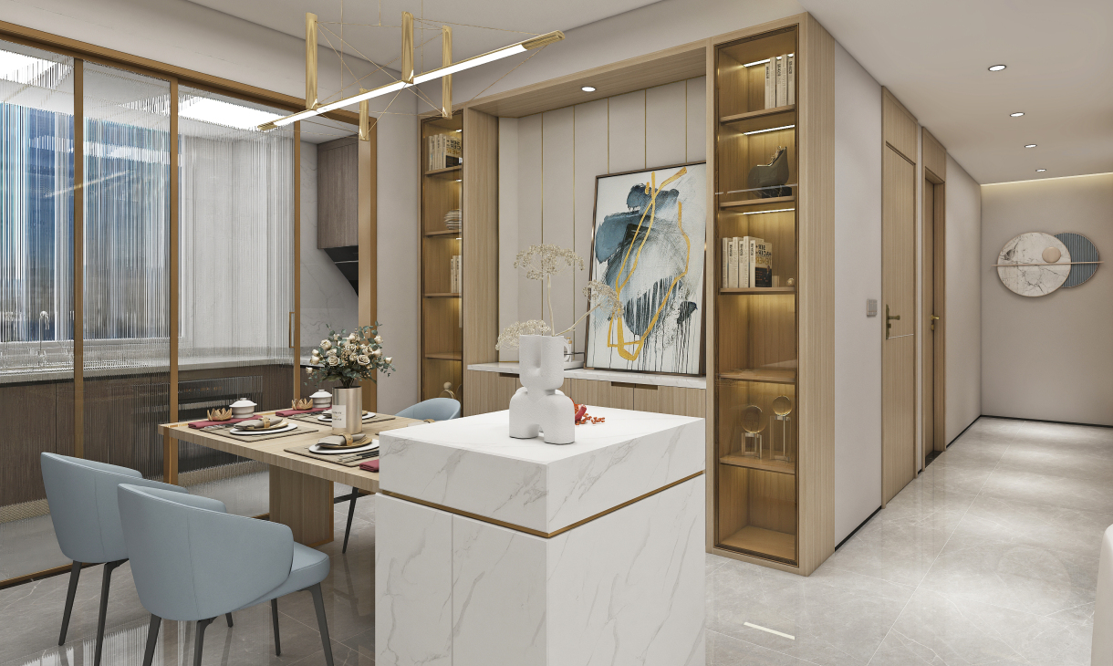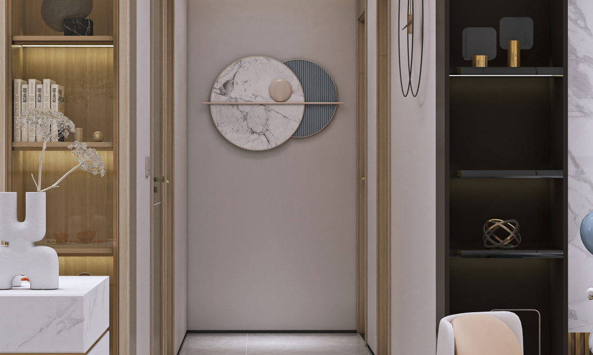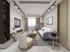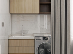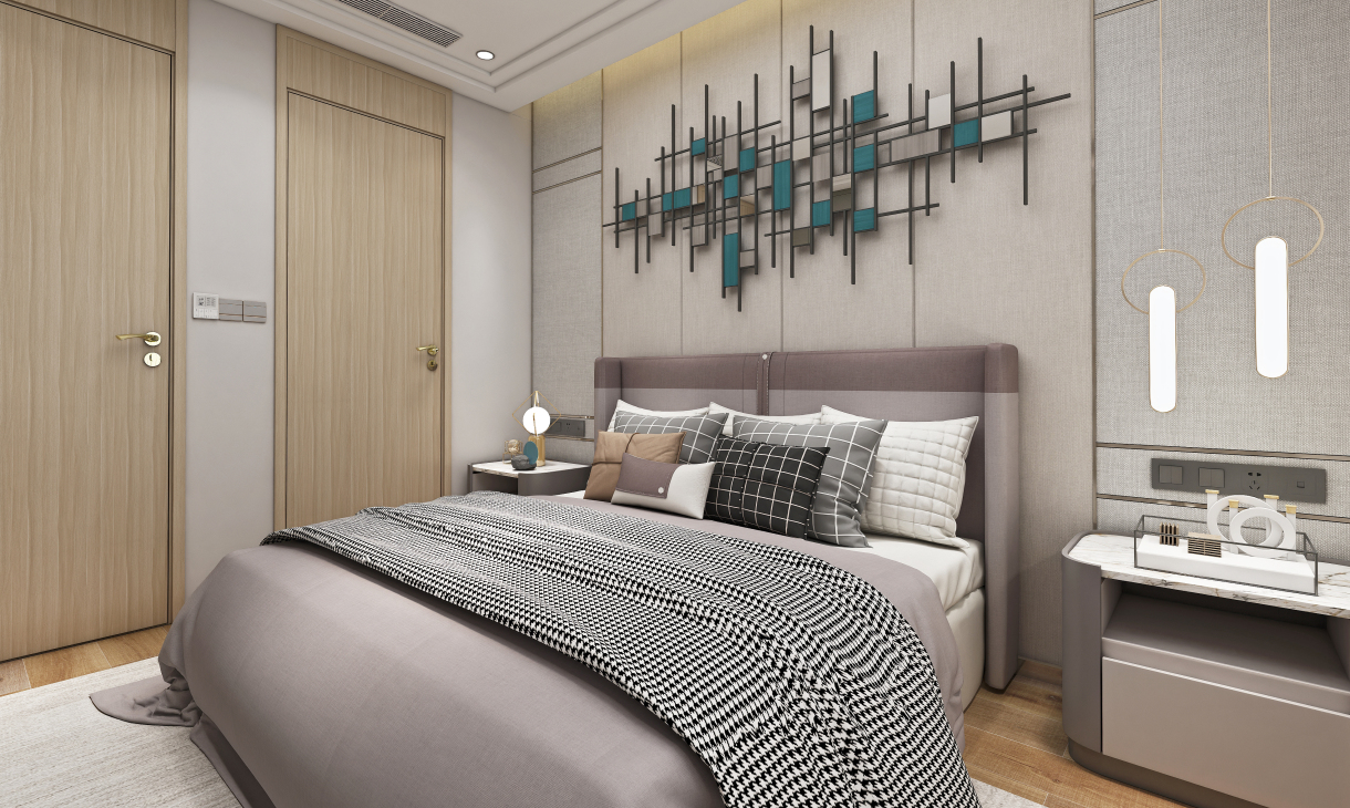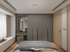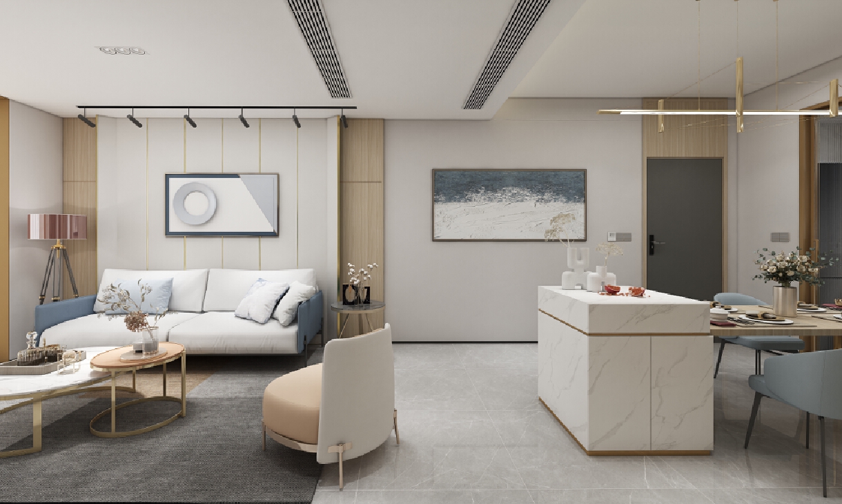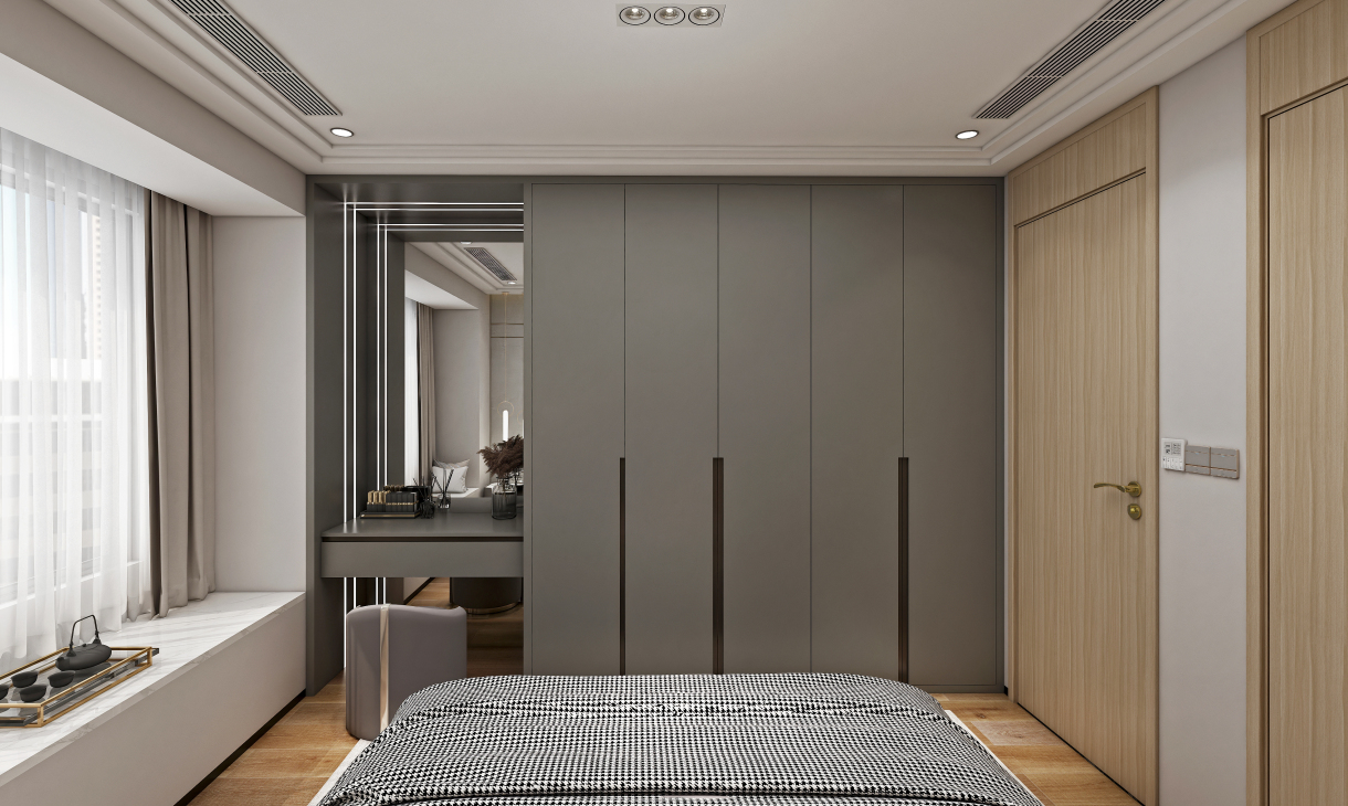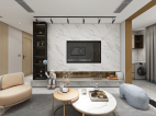 現(xiàn)代輕奢,運用橡木本色和混油材質(zhì),整體風格呈現(xiàn)灰調(diào),軟裝配色搭配選用莫蘭迪色系