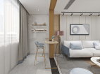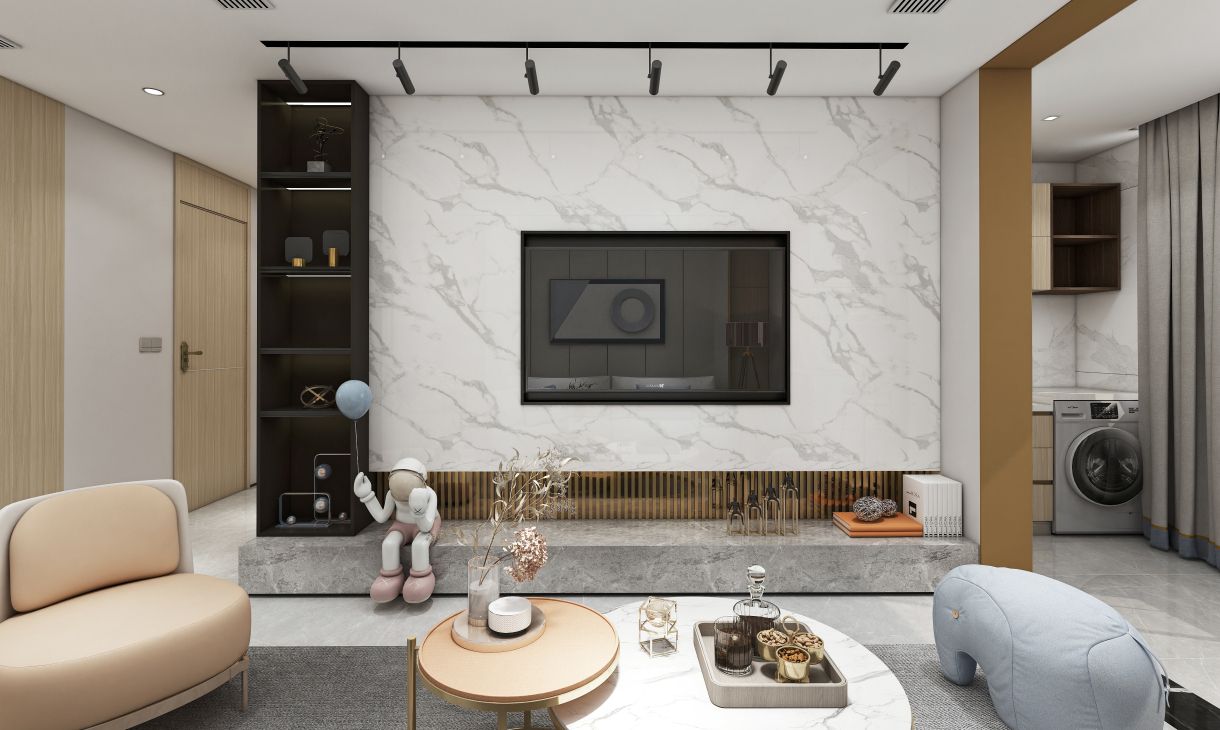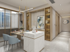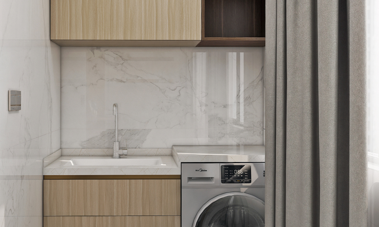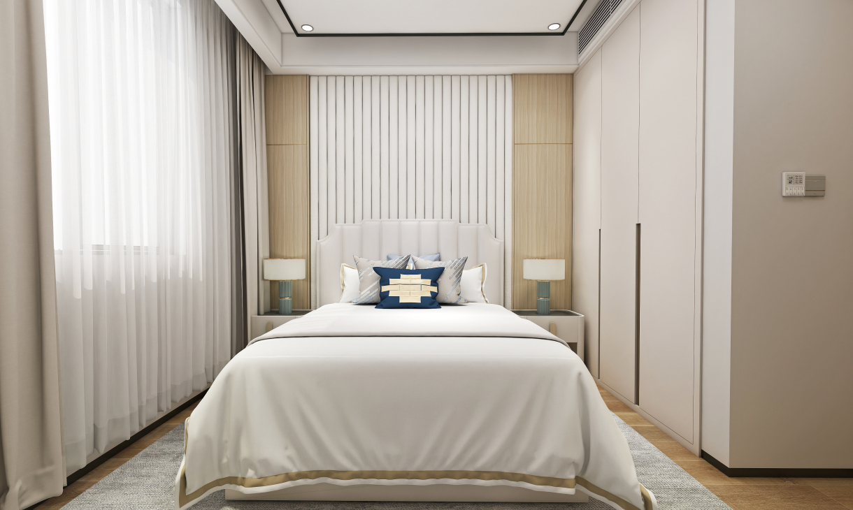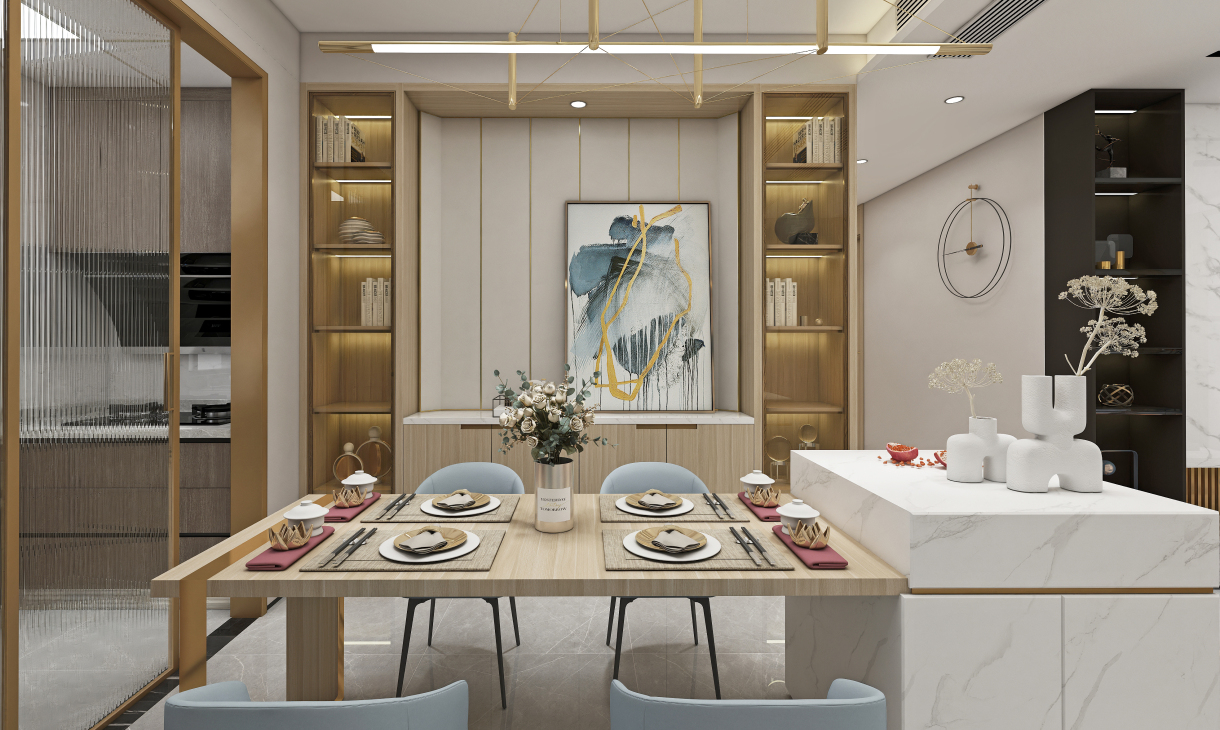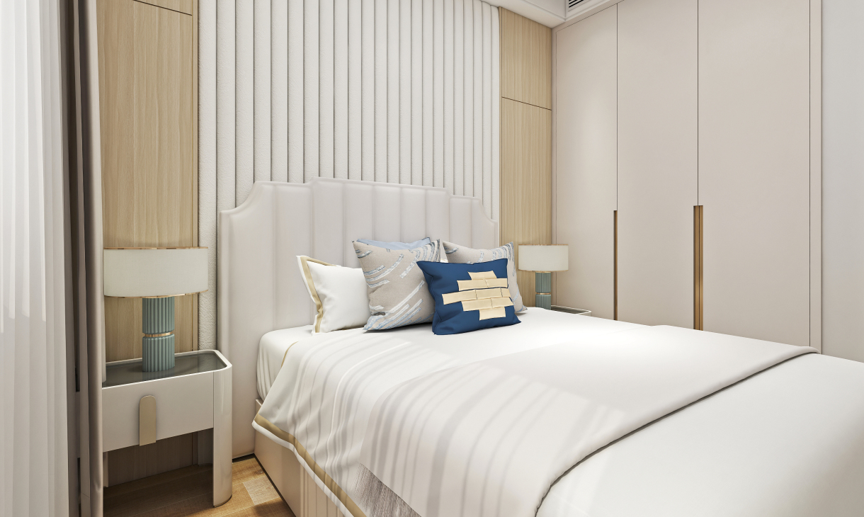 現(xiàn)代輕奢,運用橡木本色和混油材質(zhì),整體風格呈現(xiàn)灰調(diào),軟裝配色搭配選用莫蘭迪色系