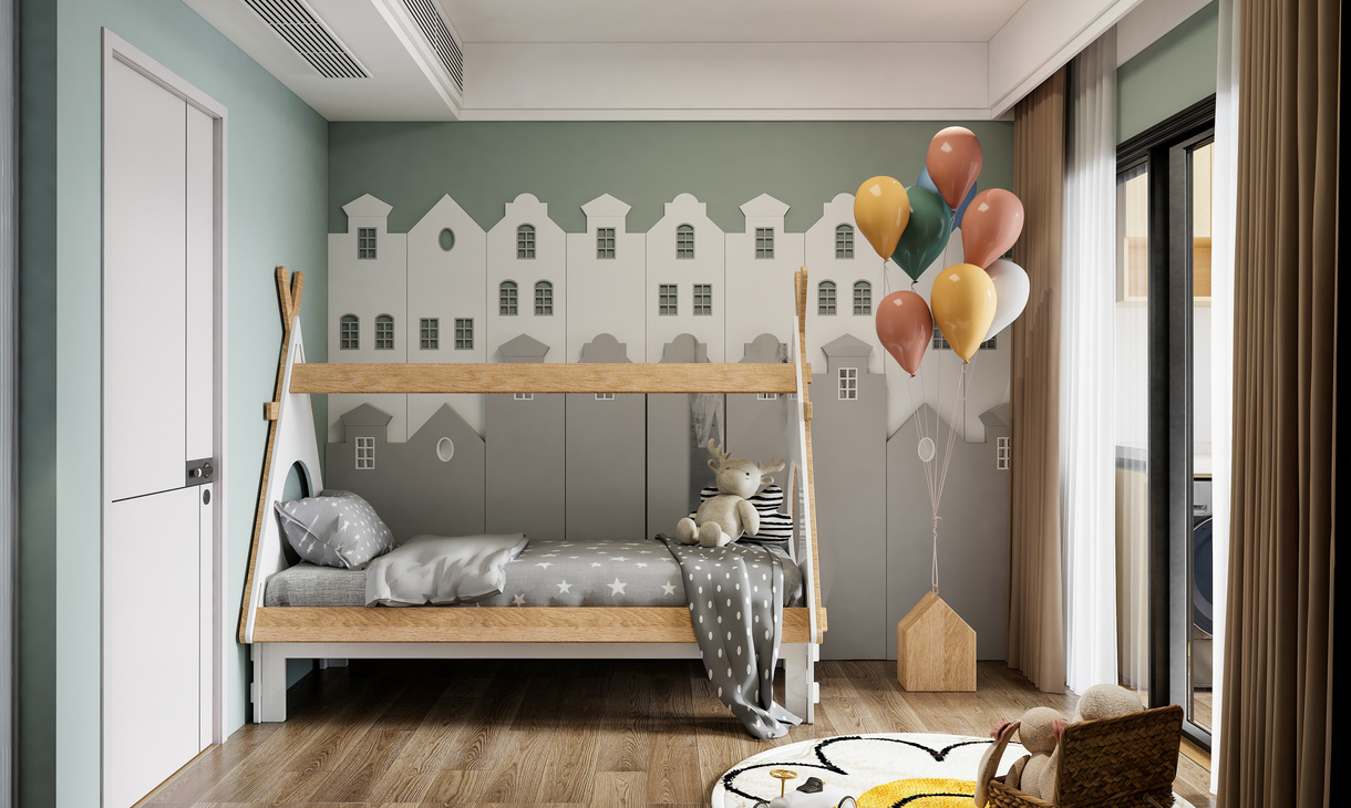 效果圖:全屋概覽效果圖、客廳效果圖、餐廳效果圖、廚房效果圖、兒童房效果圖、主臥效果圖