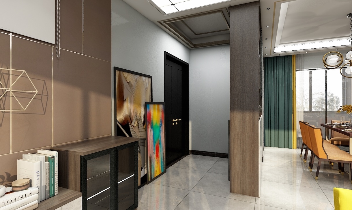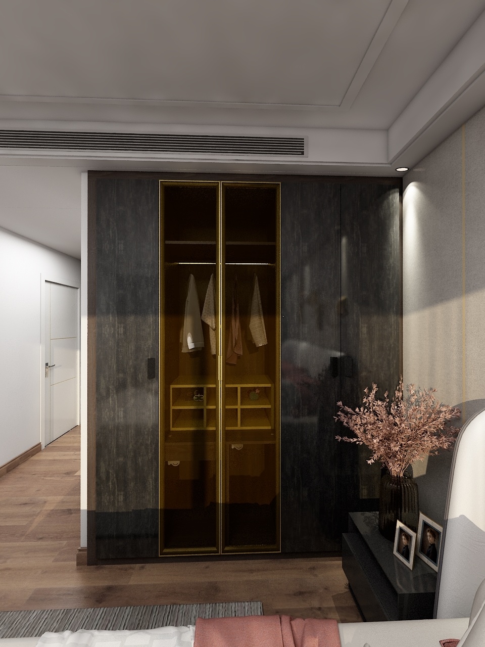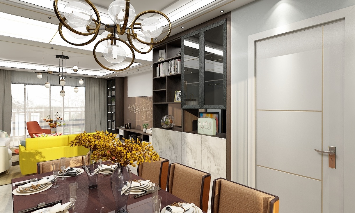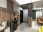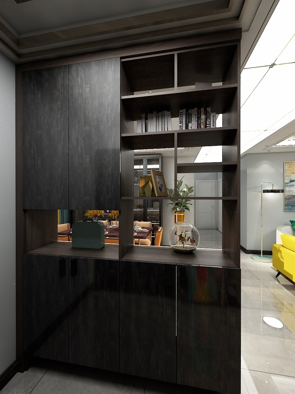 針對(duì)年輕客戶的審美需求,采用深色為基調(diào),配以玻璃和金屬元素,加上亮色軟裝,搭配出后現(xiàn)代與輕奢的風(fēng)格