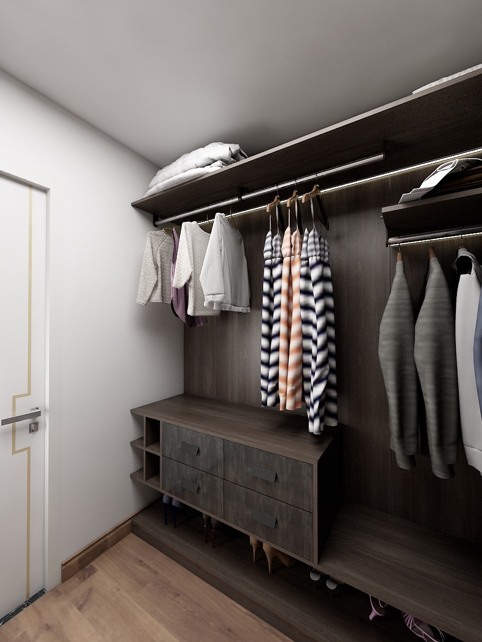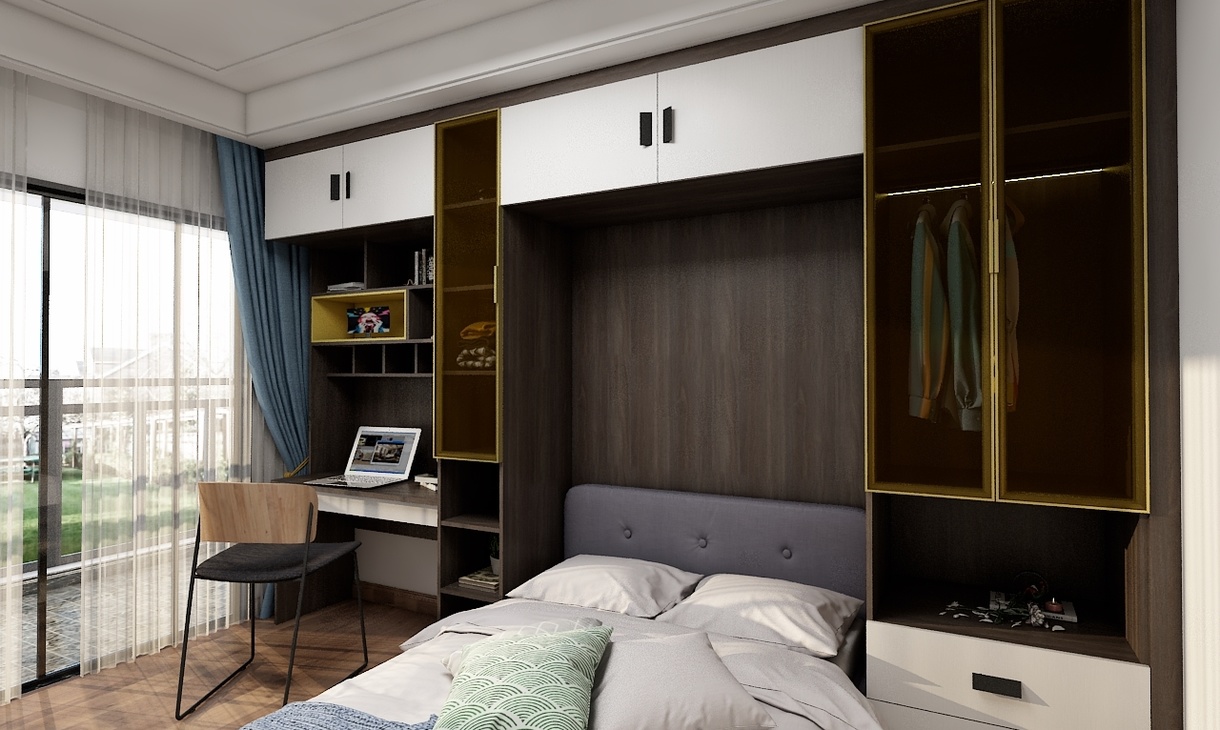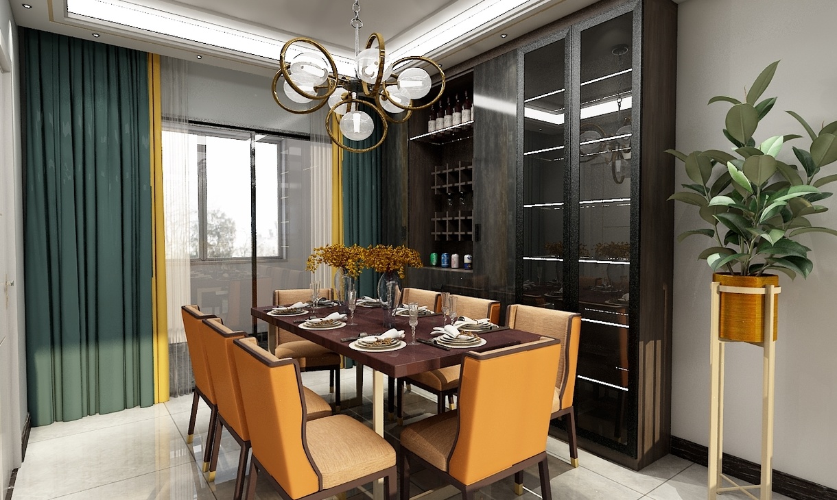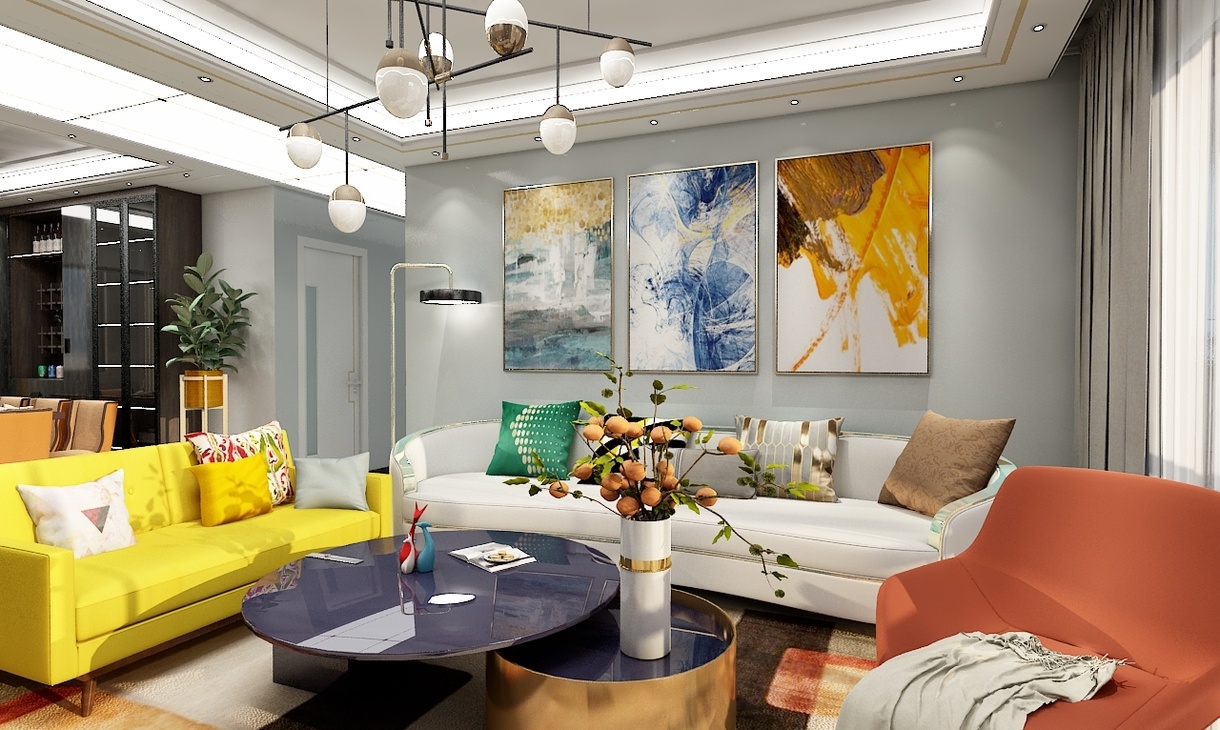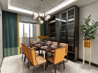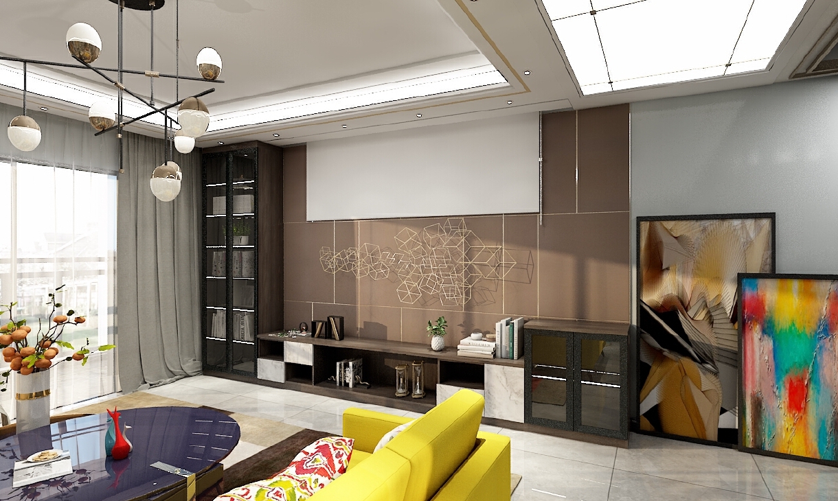 針對(duì)年輕客戶的審美需求,采用深色為基調(diào),配以玻璃和金屬元素,加上亮色軟裝,搭配出后現(xiàn)代與輕奢的風(fēng)格