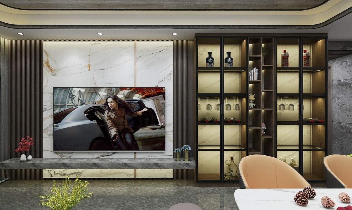 以現(xiàn)代主義的高度理性,減少無(wú)必要的構(gòu)成,地板上頂顯現(xiàn)業(yè)主個(gè)性,冷靜端莊的大理石磚與叛逆背景的碰撞,都在潛意識(shí)表現(xiàn)業(yè)主內(nèi)心的不凡,于現(xiàn)代極簡(jiǎn)主義中流露出寫(xiě)意之美,簡(jiǎn)雅而素淡輕奢