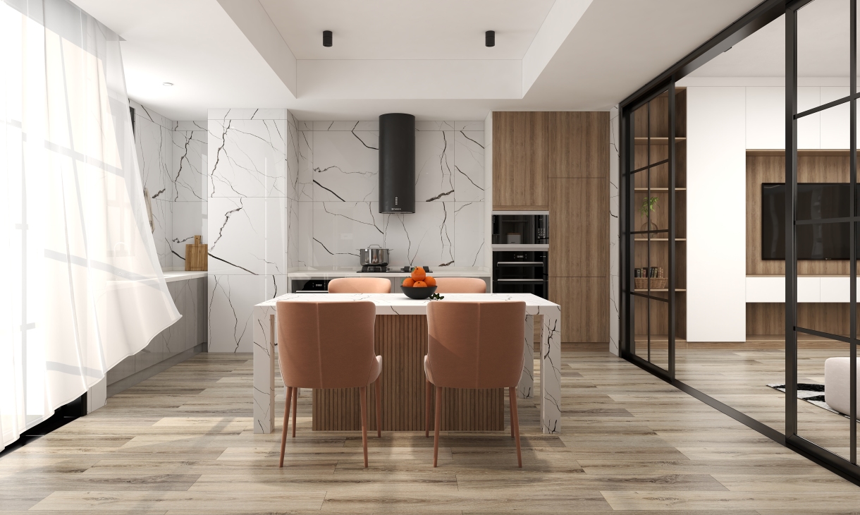 傍海而生的建筑,景觀自然就是一切的設(shè)計(jì)主軸,為了使空間呈現(xiàn)更加強(qiáng)大的包容和可能性,我們一致決定以功能大于形式的現(xiàn)代極簡(jiǎn)風(fēng)打造這套新房。
