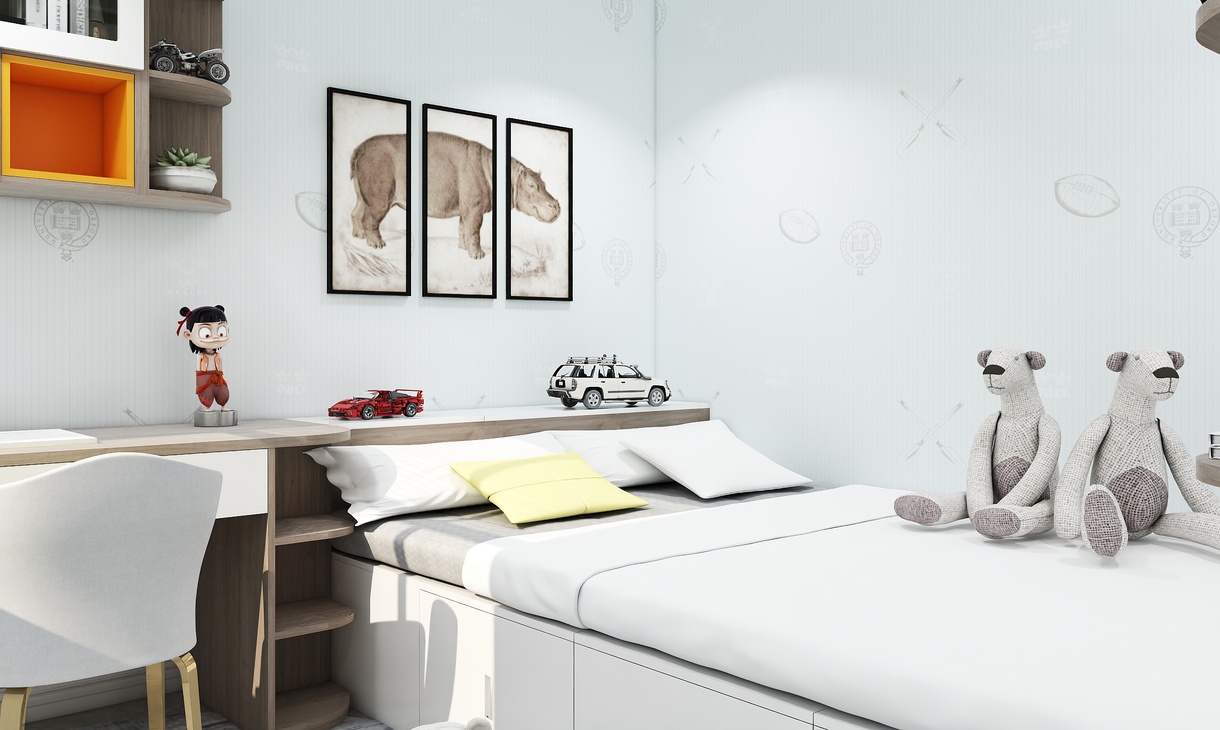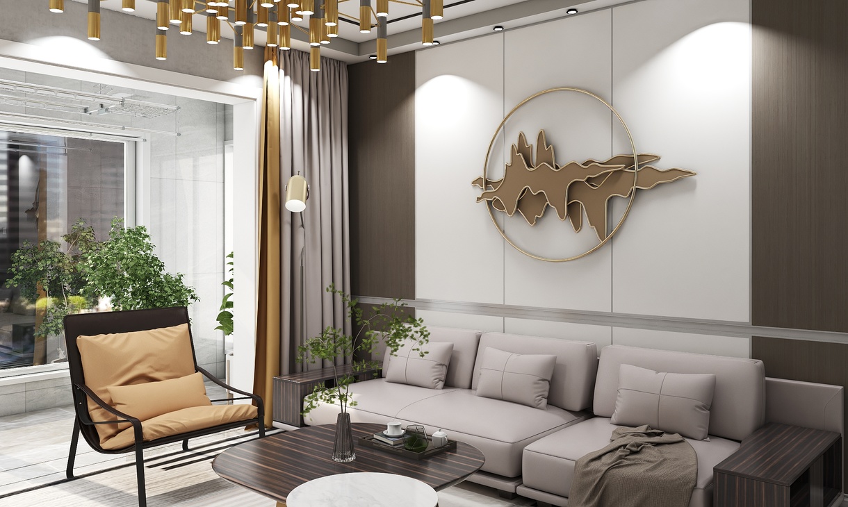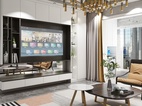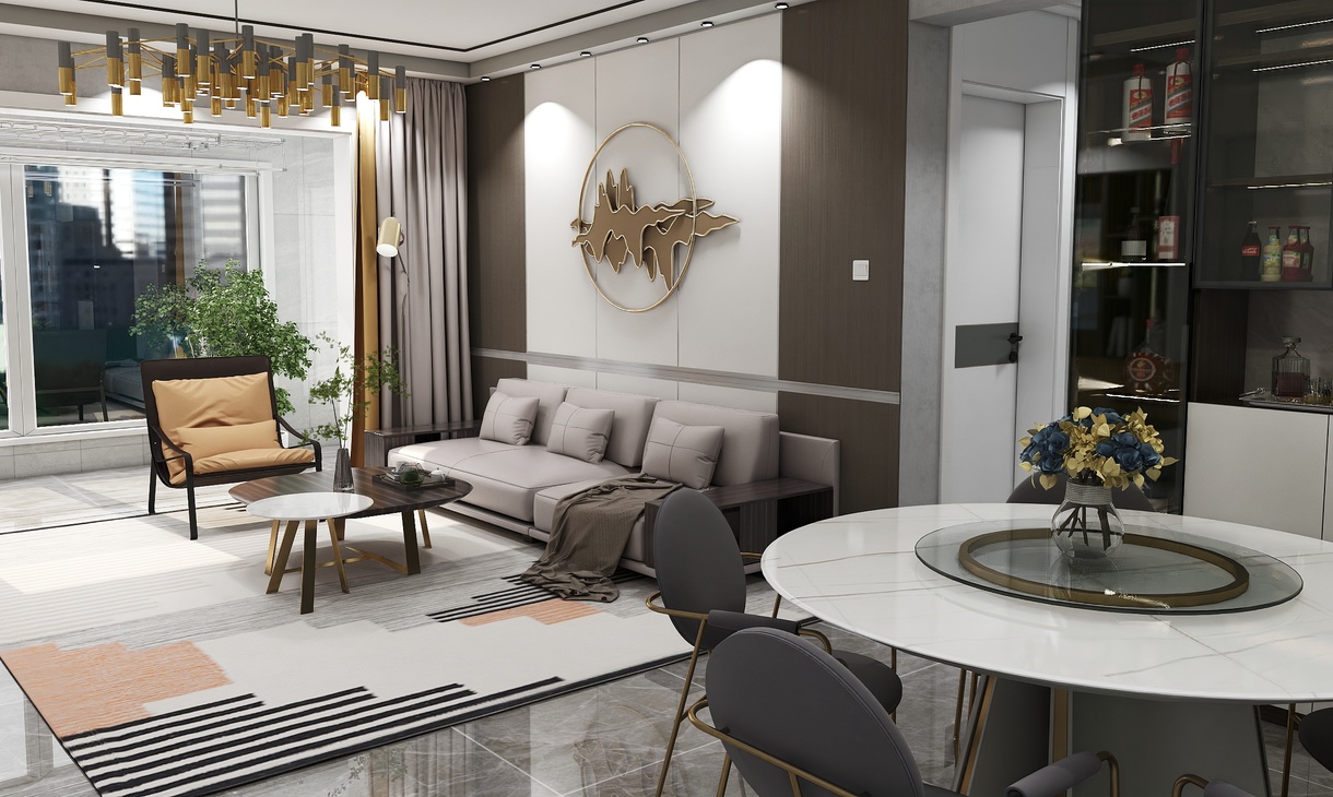 這個是以一個四居室,一家三口居住足夠使用,屋主家有一個小男孩,對于環(huán)保非??粗亍R院啙崬榛A,皮質(zhì),大理石,木質(zhì)等材料搭配設計,沙發(fā)背景墻使用木質(zhì)墻板灰白搭配,搭配米白色沙發(fā)于橙色休閑椅,使得空間不壓抑。電視柜使用整墻儲物柜來設計,即能充分儲物,又可以起到裝飾作用