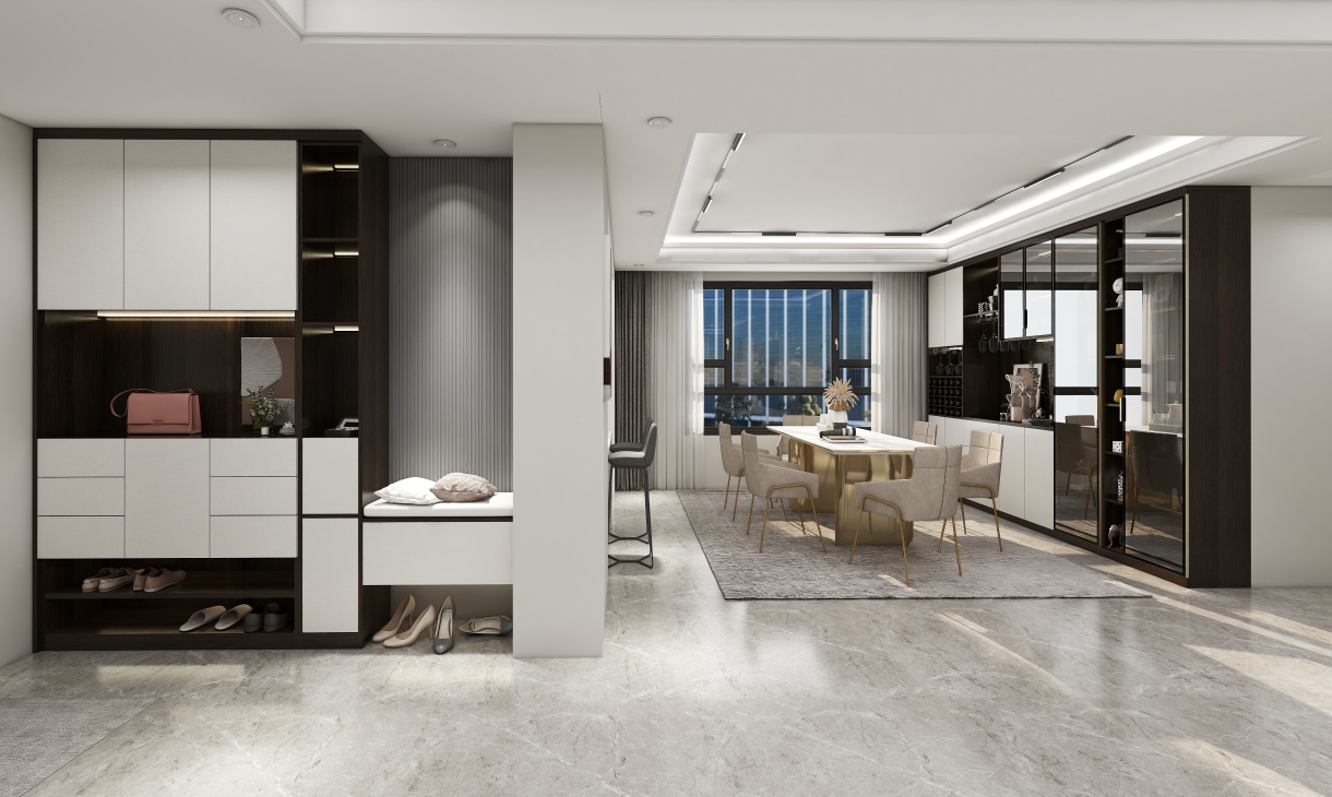 每個空間至少2張效果圖+1張全案全景圖展示,方案描述完整,所有空間需命名。
