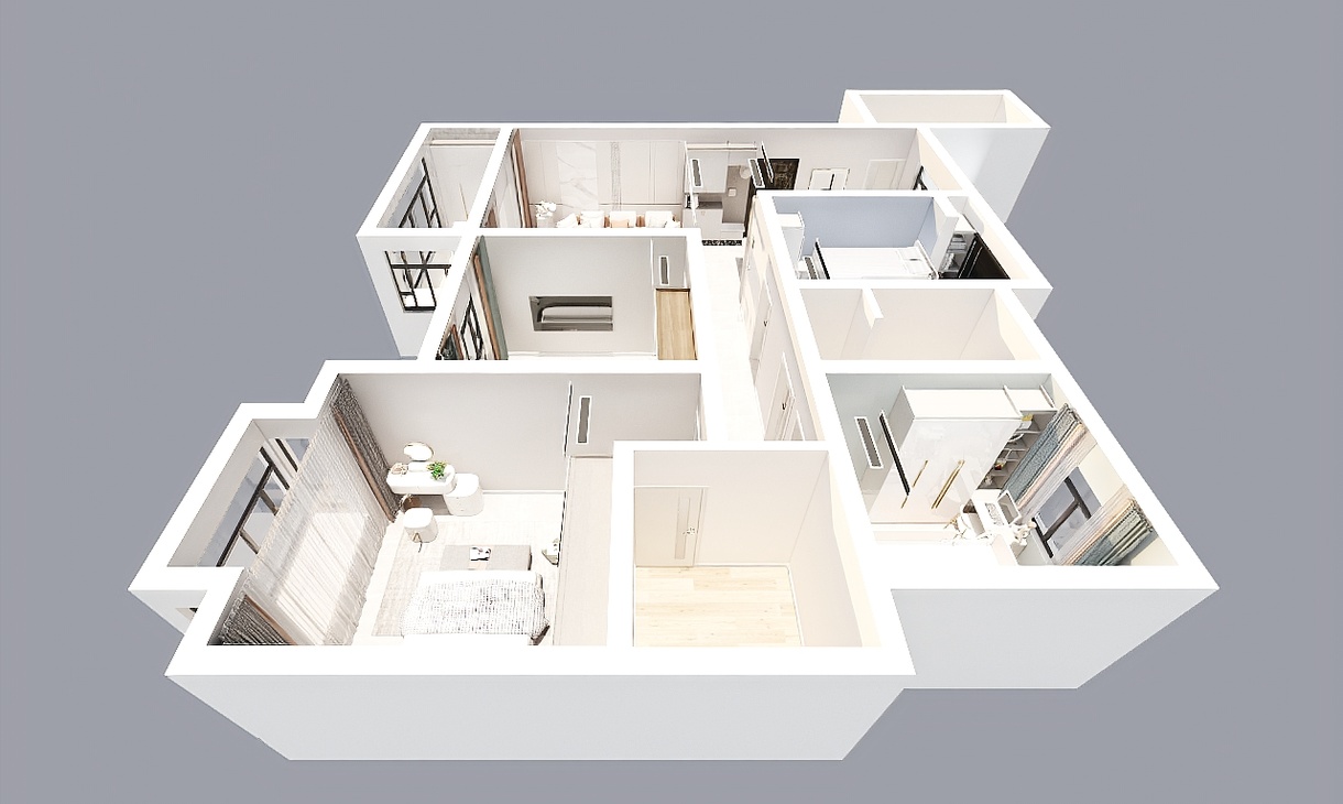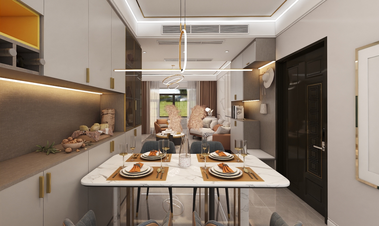 每個(gè)空間至少2張效果圖+1張全案全景圖展示,方案描述完整,所有空間需命名。