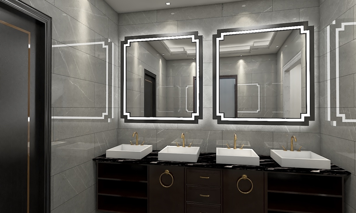 客衛(wèi)干區(qū)墻面在瓷磚選材及鋪貼手法上獨具匠心,新穎獨特。