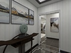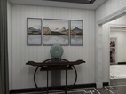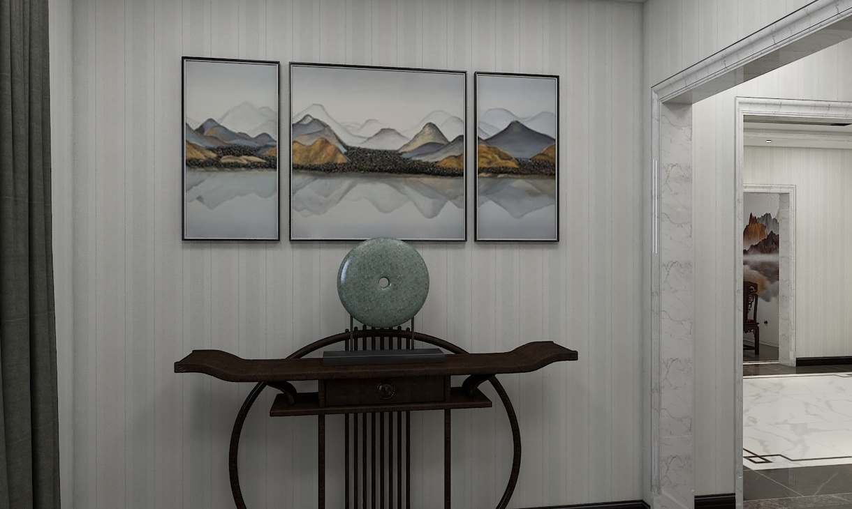 玄關(guān)設(shè)計上簡單干練,入戶門正對背景墻上不做較為復(fù)雜的背景造型,只有一張新中式風(fēng)格的端景條案,大氣儒雅!