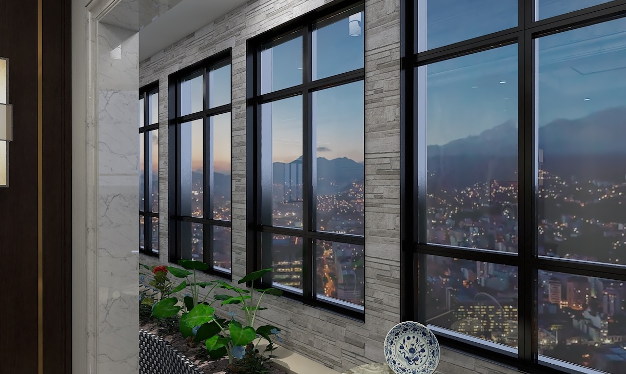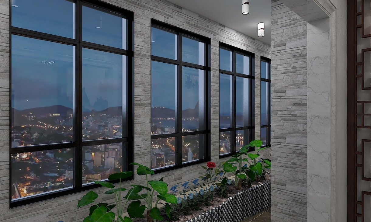 客廳陽臺連接客廳、茗茶廳以及餐廳,寬敞明亮,在此處客戶以陳列花草為主要目的,是名副其實的觀賞陽臺。