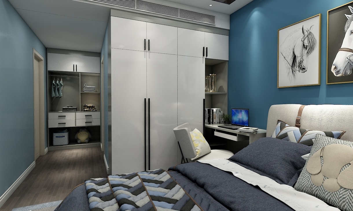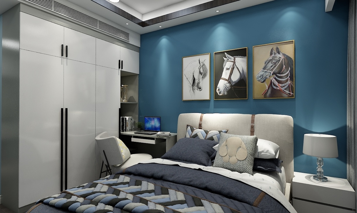 鮮艷的藍(lán)色,墻紙的藍(lán)色從淺到深看出不一樣的效果。