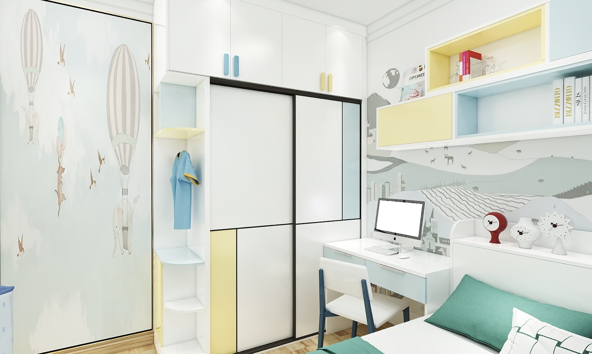 效果圖:全屋概覽效果圖、客廳效果圖、餐廳效果圖、廚房效果圖、兒童房效果圖、主臥效果圖