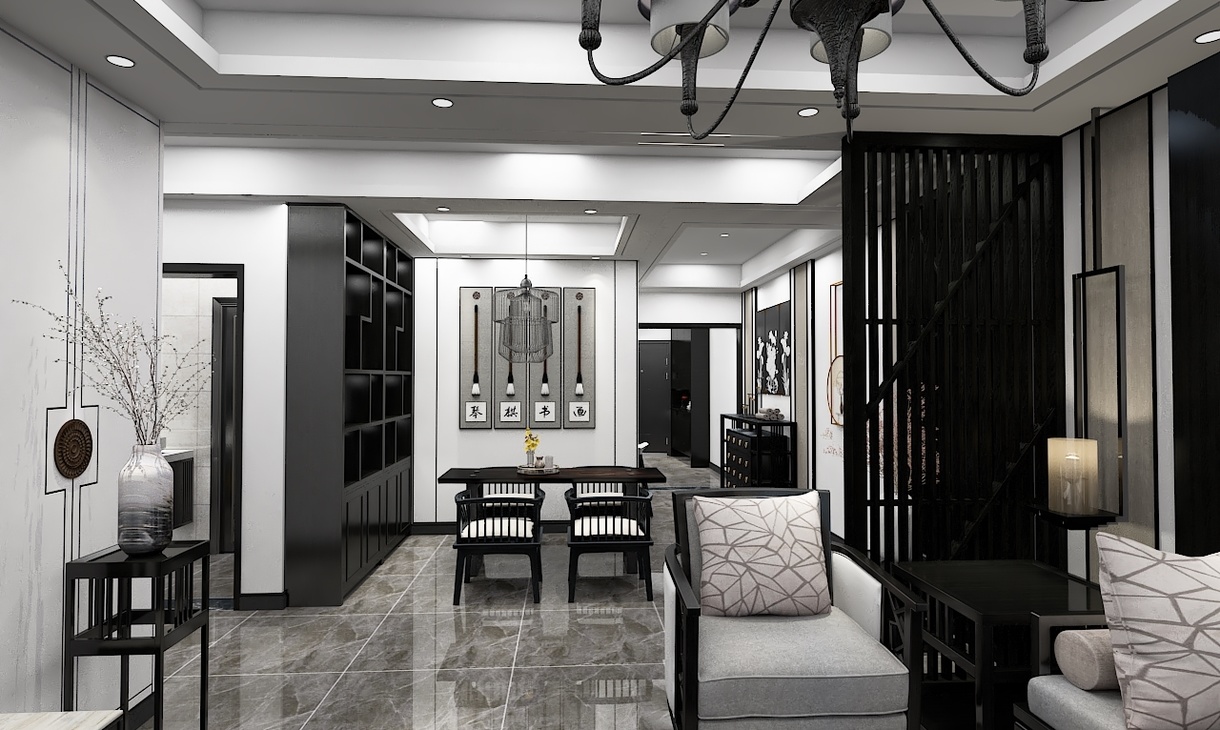 脫離繁瑣的傳統(tǒng)設計,以深色的跳躍拉開空間層次,對比的襯托,使整個空間的感覺簡而不簡單