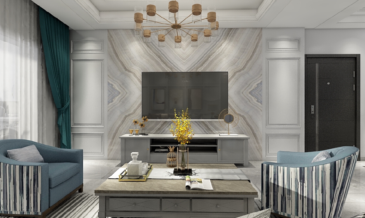美式輕奢的風(fēng)格,以淺灰為主色調(diào)。