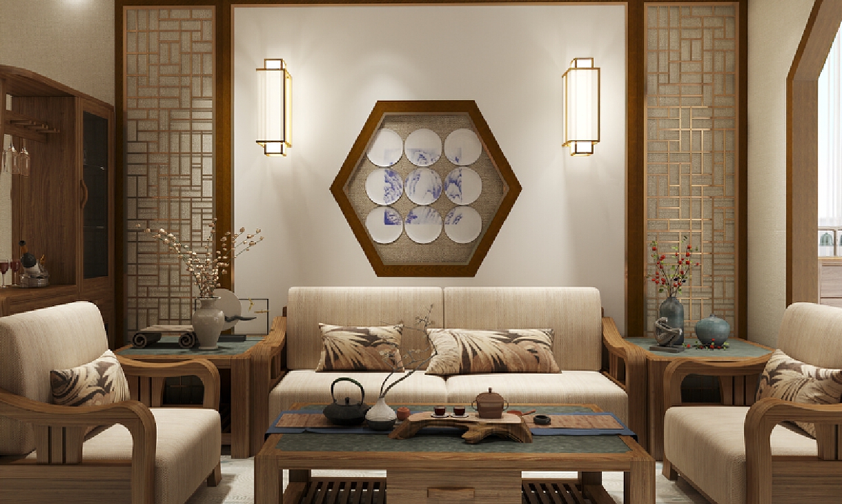 背景墻的水墨圖尤為的突出主題,復(fù)古而有韻味。