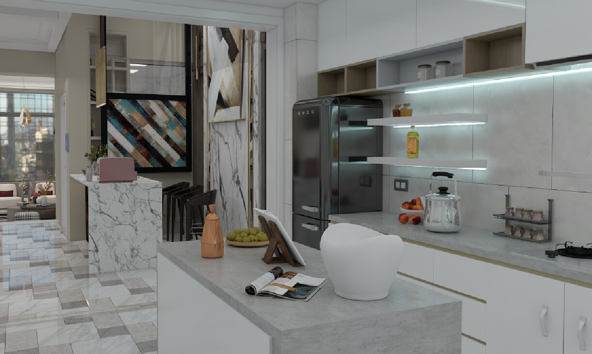 現(xiàn)代風(fēng)格以其簡潔自然的設(shè)計,讓廚房也能夠變得簡潔明快起來。