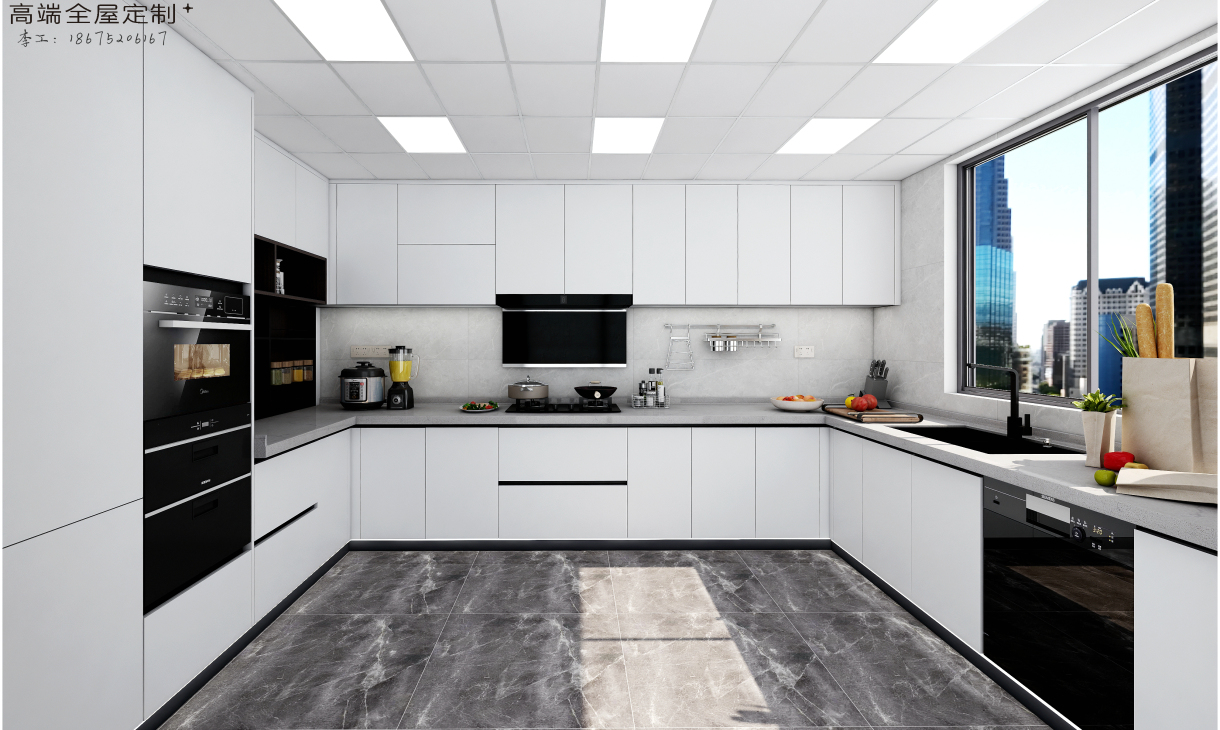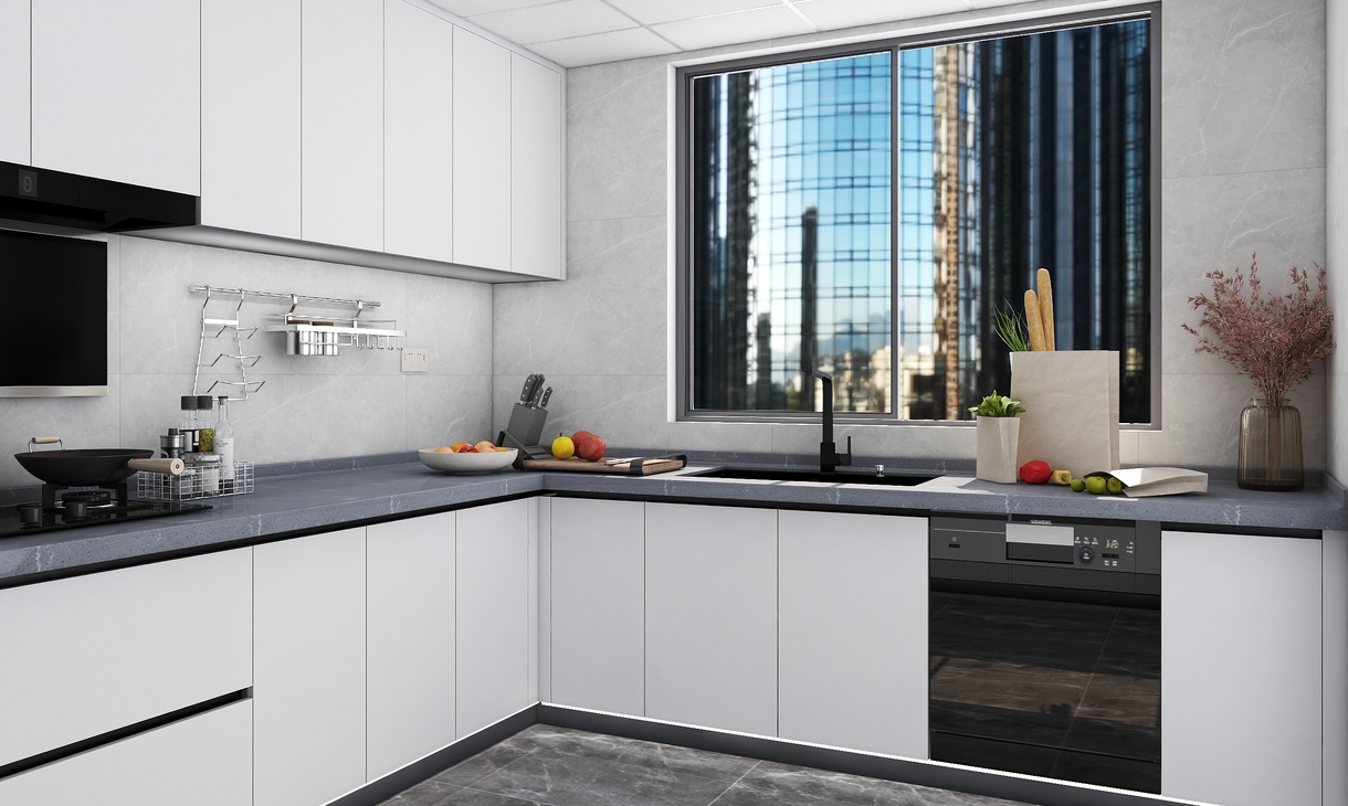 方案名:門板琺瑯白臺面灰禪影