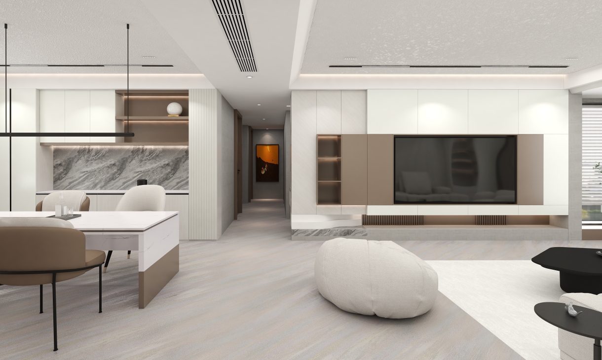 每個空間至少2張效果圖+1張全案全景圖展示,方案描述完整,所有空間需命名。