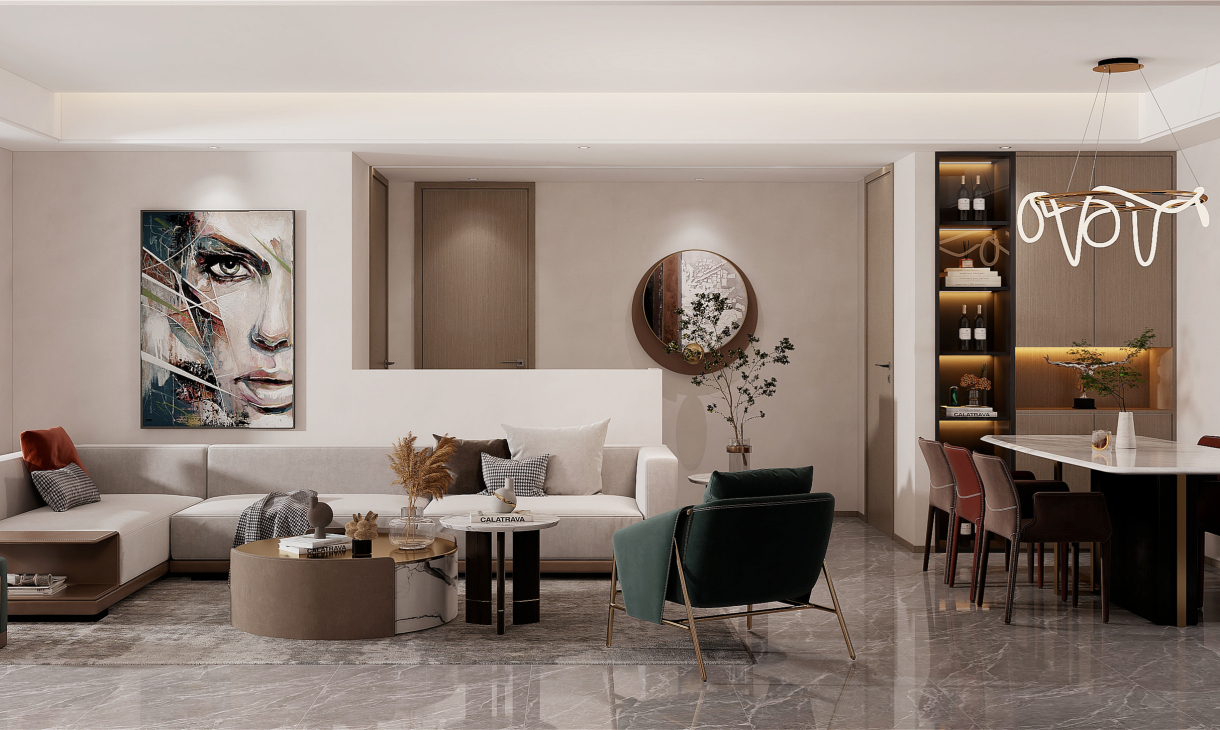 每個(gè)空間至少2張效果圖+1張全案全景圖展示,方案描述完整,所有空間需命名。