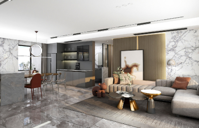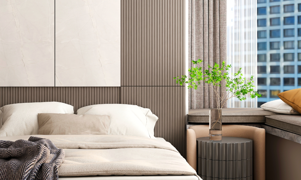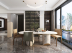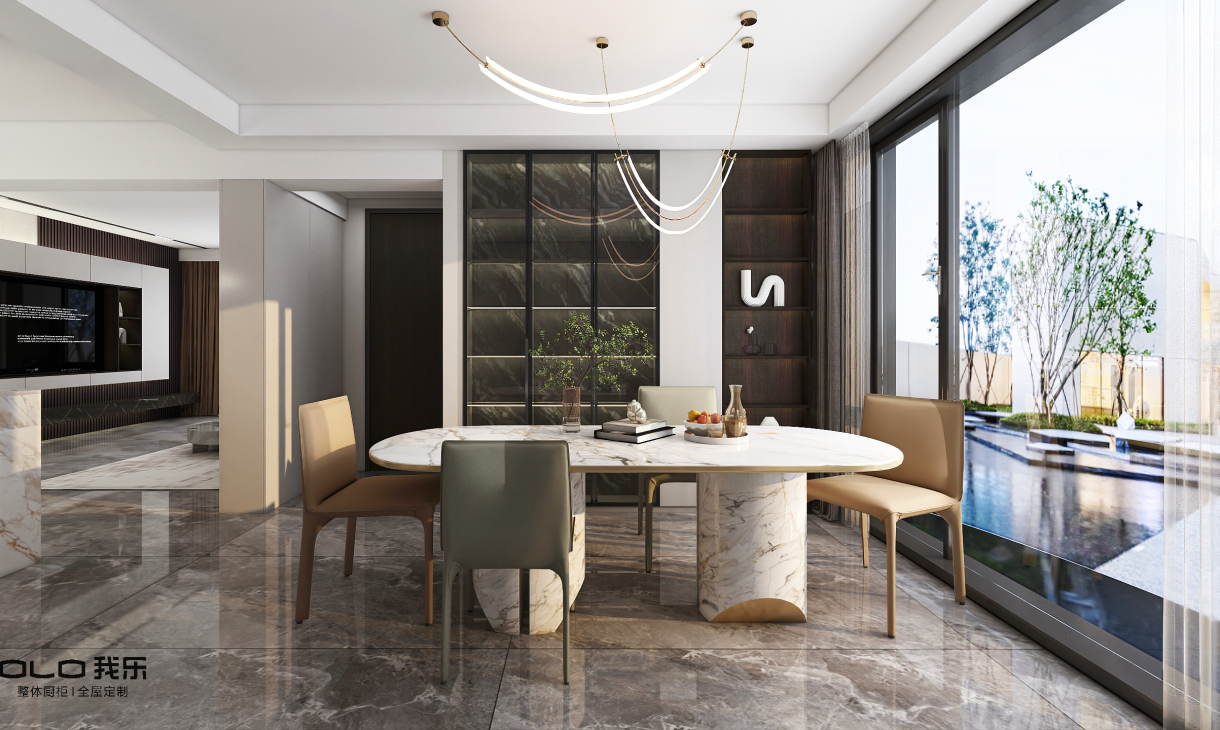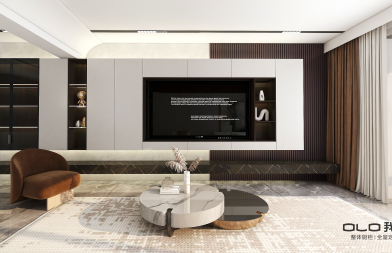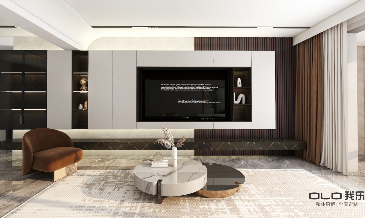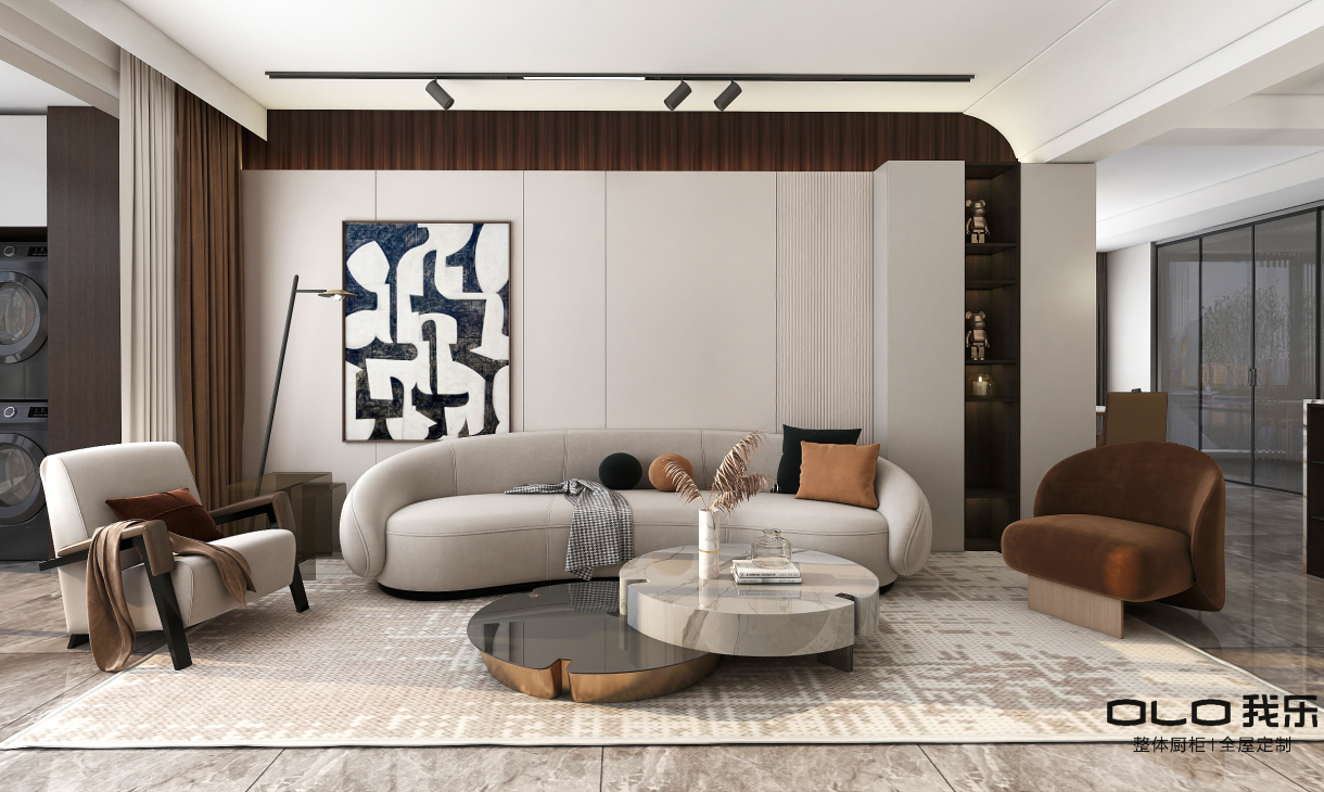 深色胡桃與敦煌灰霧的混搭創(chuàng)造出現(xiàn)代與國(guó)潮文化的藝術(shù)碰撞