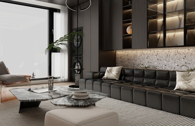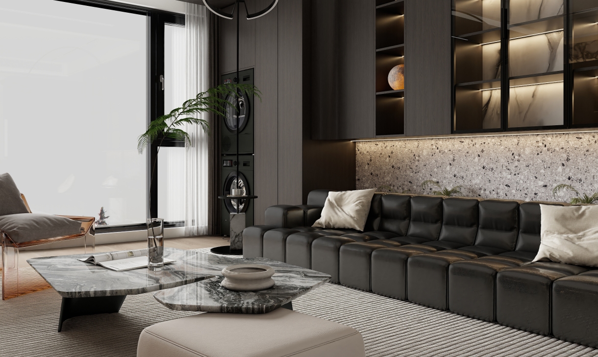 以深色木紋為主色調(diào),保留必要的整潔外觀,減少不必要的元素,通過創(chuàng)新思維來營造簡潔明快的空間氛圍