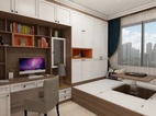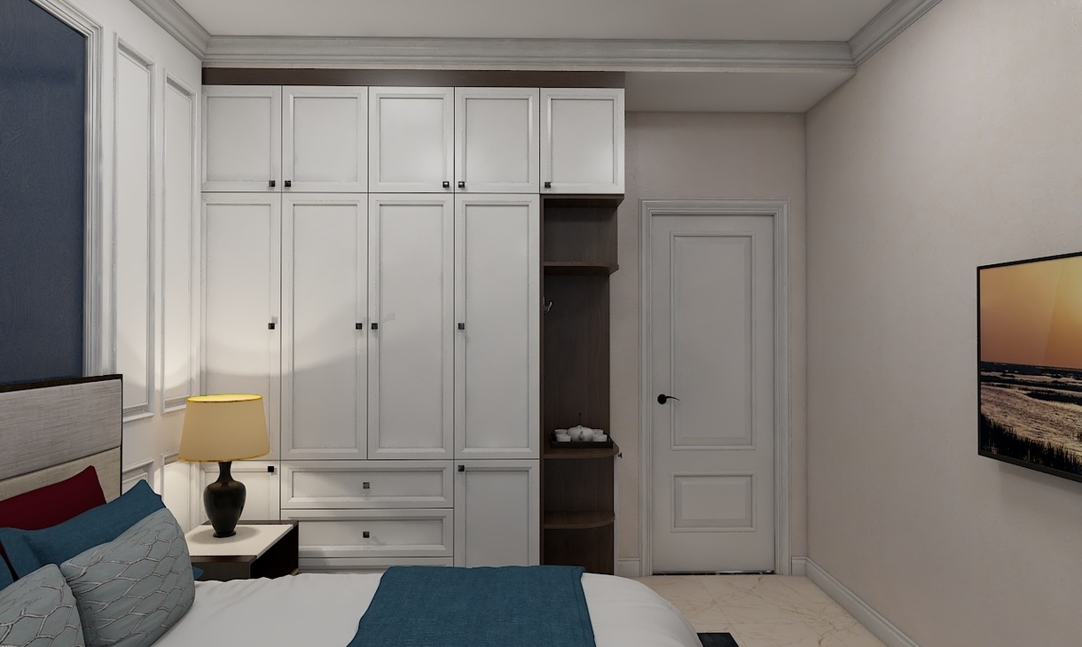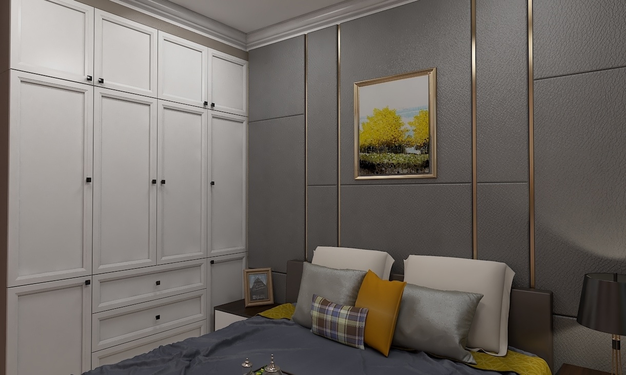 客臥衣柜以白色為主,搭配硬包背景墻,簡約、質(zhì)樸的設(shè)計(jì)風(fēng)格是眾多人群所喜愛的,生活在繁雜多變的世界里已是煩擾不休,而簡單、自然的生活空間卻能讓人身心舒暢,感到寧靜和安逸;藉著室內(nèi)空間的解構(gòu)和重組,便可以滿足我們對悠然自得的生活的向往和追求,讓我們在紛擾的現(xiàn)實(shí)生活中找到平衡,締造出一個(gè)令人心弛神往的寫意空間。