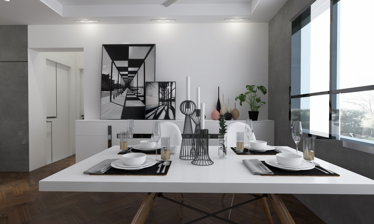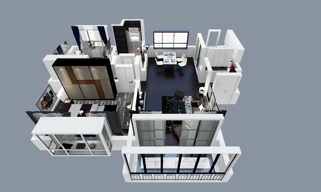現(xiàn)代風(fēng)格,黑白灰為主色調(diào),空間層次豐富,造價(jià)美麗,視覺(jué)效果和體驗(yàn)舒適。