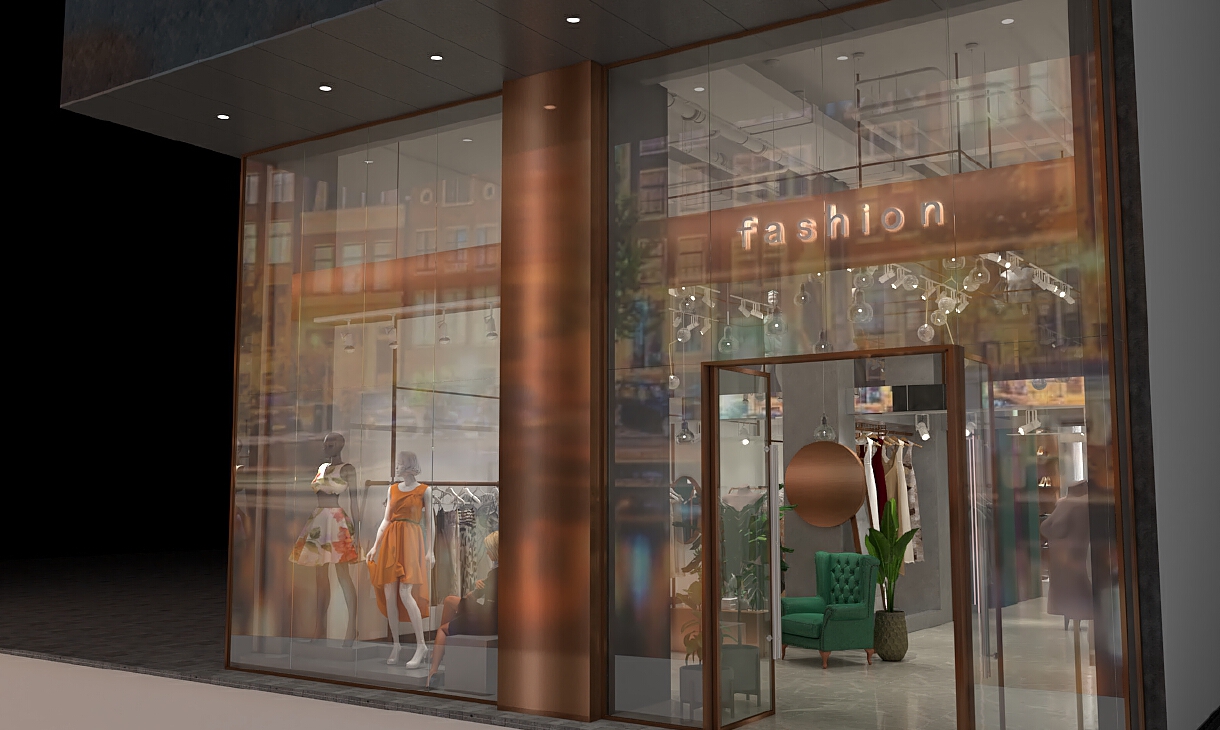 服裝店主打中端品牌,業(yè)主要求要明亮,要閃要眼前一亮,材料選用最近很火的玫瑰金。而對比同街店鋪的夾層設(shè)計,使用高層設(shè)計,門頭比同街店鋪高出一層,全通透玻璃,在夜晚一定做那條街最靚的仔。貨架選用簡約設(shè)計,簡單明了,不擁擠,服裝上架之后會顯得高端很多。主服裝展示區(qū)往試衣間的通道上做了感應(yīng)燈帶處理,走過去的時候一條一條等亮起,增加一種儀式感。原來打算全白墻面,但是業(yè)主突然說看上一款祖母綠的沙發(fā),喜歡的不行,問我搭不搭,然后就在色彩上放飛自我,大膽使用多色混搭。總體雙方都很滿意,很愉快的合作。