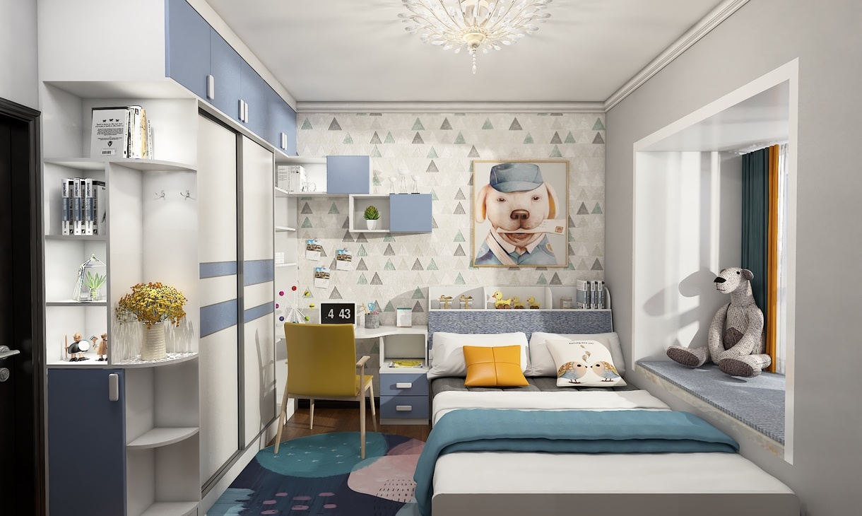 效果圖:全屋概覽效果圖、客廳效果圖、餐廳效果圖、廚房效果圖、兒童房效果圖、主臥效果圖