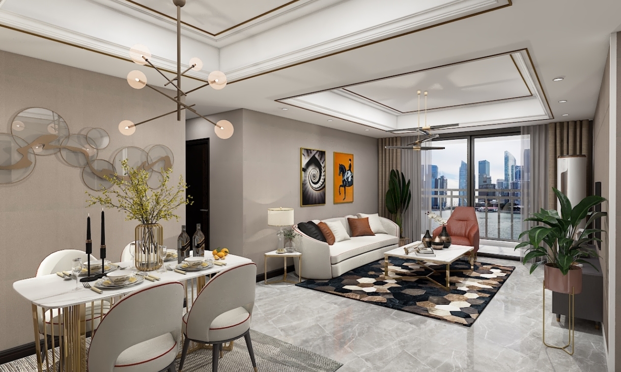 每個(gè)空間至少2張效果圖+1張全案全景圖展示,方案描述完整,所有空間需命名。
