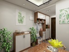 1.簡約而精良,在瑣碎的生活中進行提煉,加以業(yè)主對于收納需求的升華,營造一份屬于簡單一居室所缺乏的自然、溫暖的格調(diào); 2.一居室通體的戶型,隔斷柜的布局對于整個空間的分割,以及鏤空玄關(guān)的陽光透射性,為空間營造一份如家般的格調(diào); 3.現(xiàn)代風格的整體色調(diào),如深咖般的菲爾德橡木搭配門板白木紋的跳色搭配,簡約又不失簡單,低調(diào)而又不失儒雅。