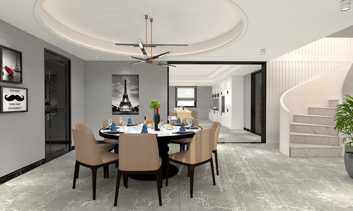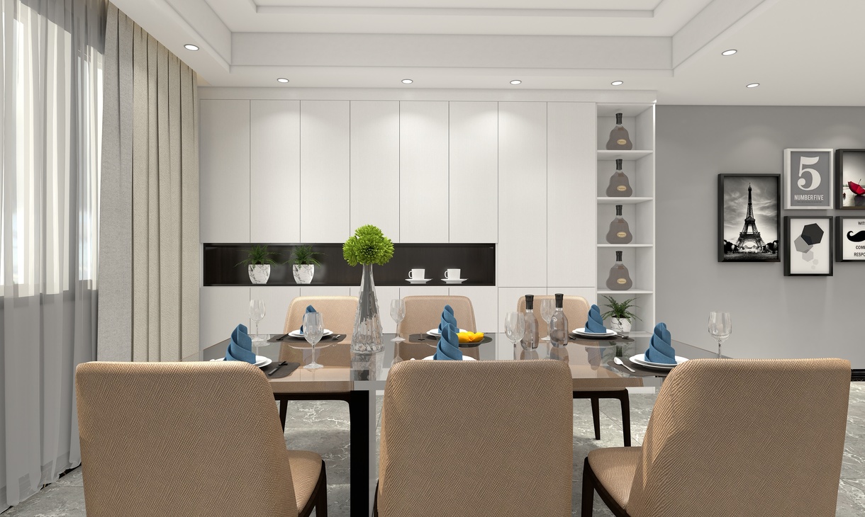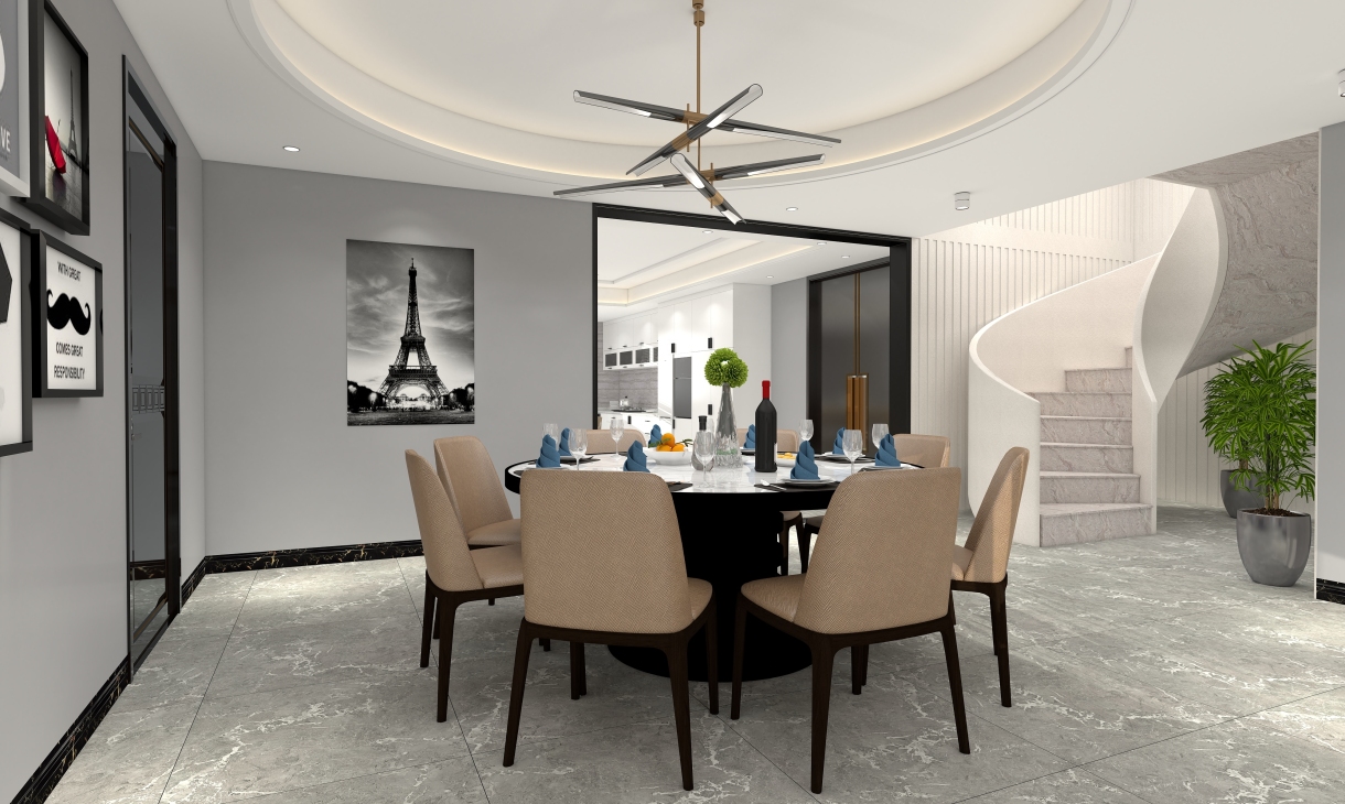 簡約俐落的金屬質(zhì)材鋪敘與敞明大方的格局尺度在案例中設(shè)計師以陳設(shè)藝術(shù)品及線條材質(zhì)吊頂錯落層次來營造大氣、自然、輕奢的裝飾美學(xué)氛圍。墻面、地面、家具陳設(shè)等均以簡潔的造型、精細的工藝為其特征,強調(diào)品質(zhì)感和細節(jié)處理。在色彩搭配方面以冷暖色為主,溫馨的客桌花束、直觀大氣帶著淡淡的隨意,隨著輕輕的希冀讓人感受到的是空間彌漫的溫馨與舒暢。