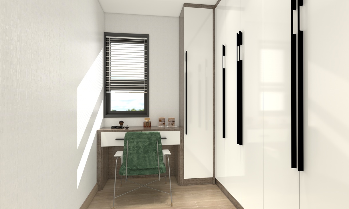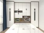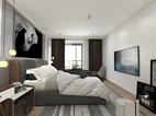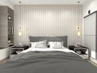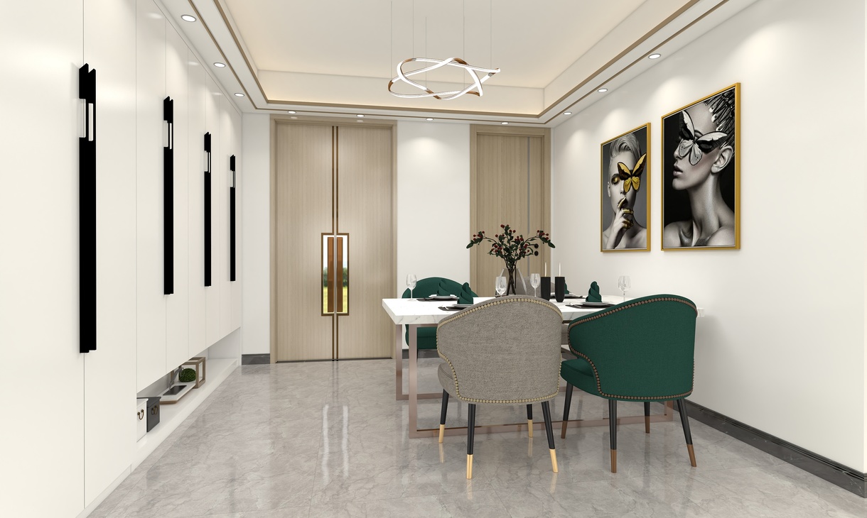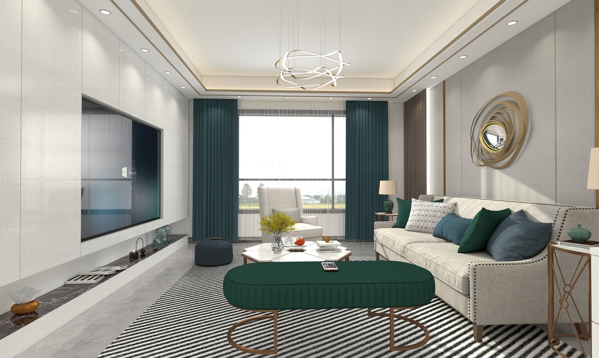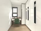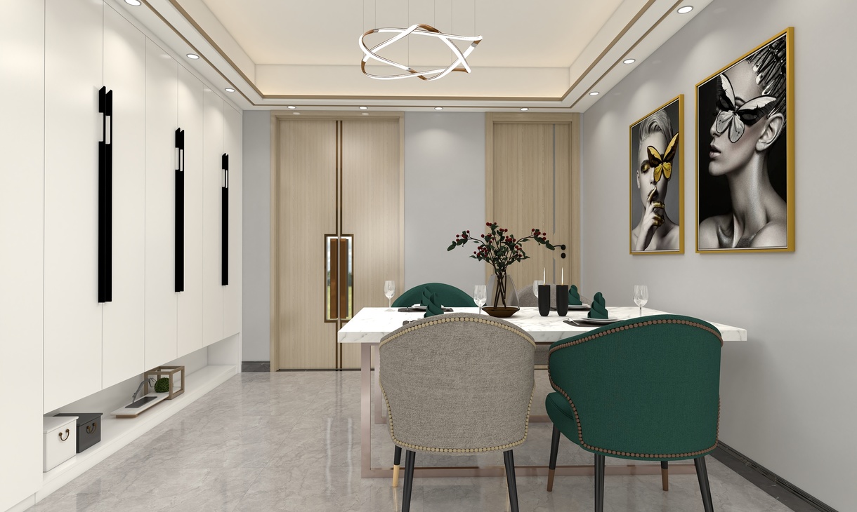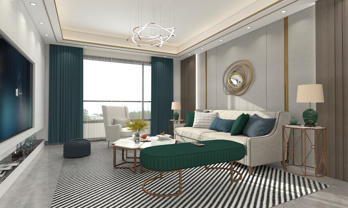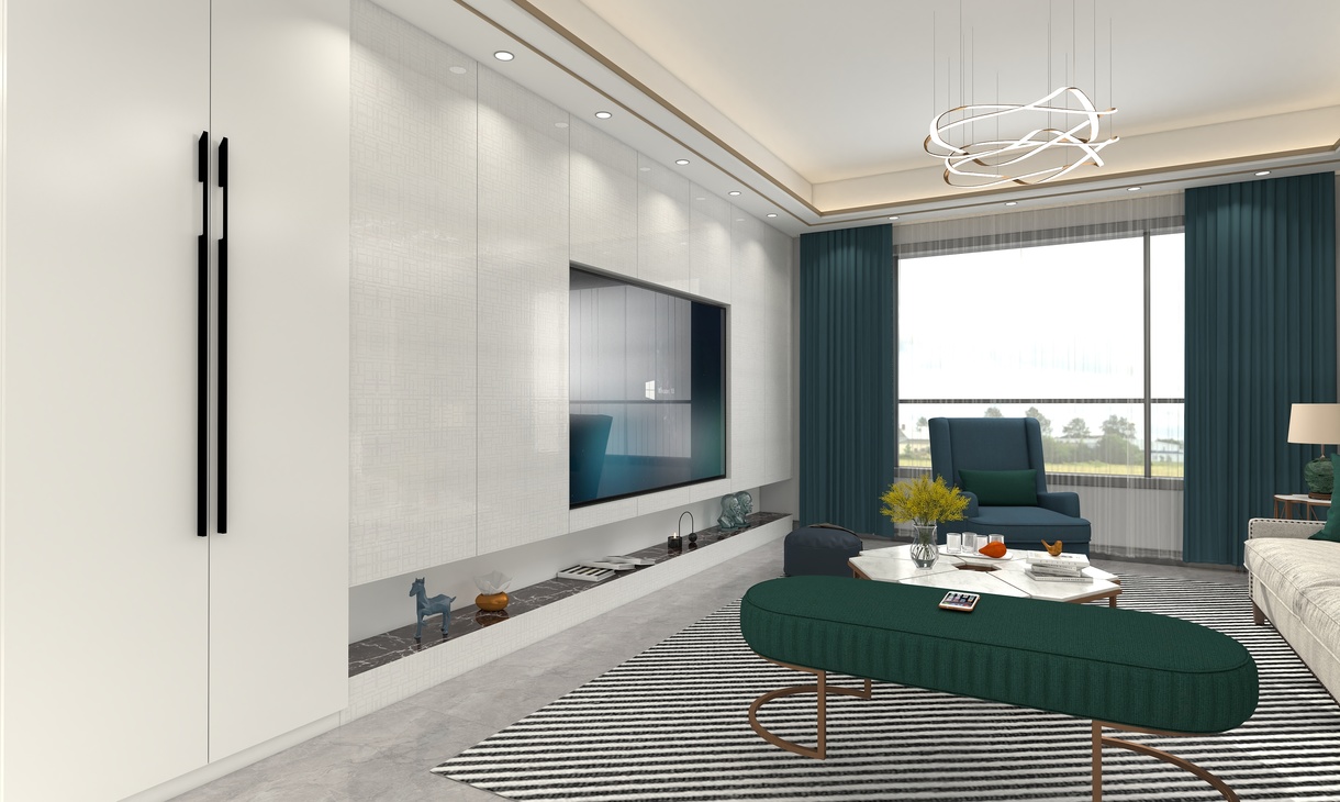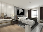 本案的主題為現(xiàn)代輕奢風(fēng)格,簡(jiǎn)約俐落的質(zhì)材鋪敘與敞明大方的格局尺度在案例中設(shè)計(jì)師以陳設(shè)藝術(shù)品及金屬線條材質(zhì)來營造大氣、自然、輕奢的裝飾美學(xué)氛圍。墻面、地面、家具陳設(shè)等均以簡(jiǎn)潔的造型、精細(xì)的工藝為其特征,強(qiáng)調(diào)品質(zhì)感和細(xì)節(jié)處理。在色彩搭配方面以冷色為主,溫馨的方桌桌花束、白色的搭毯、直觀大氣的金屬材質(zhì),帶著淡淡的隨意,隨著輕輕的希冀讓人感受到的是空間彌漫的溫馨與舒暢。臥室高雅自由的空間,充滿了唯美的想象。色彩搭配上灰白色為主基調(diào)色,在淺色的空間里點(diǎn)綴了鮮艷的黃色、冷淡的藍(lán)色,變得更加有活力性。設(shè)計(jì)師毫不吝嗇的用心,大到有氣勢(shì)感的沙發(fā)床,小到床頭背景的精致掛飾,都是經(jīng)過精心的搭配,完成業(yè)主心中對(duì)于浪漫情懷的解讀。