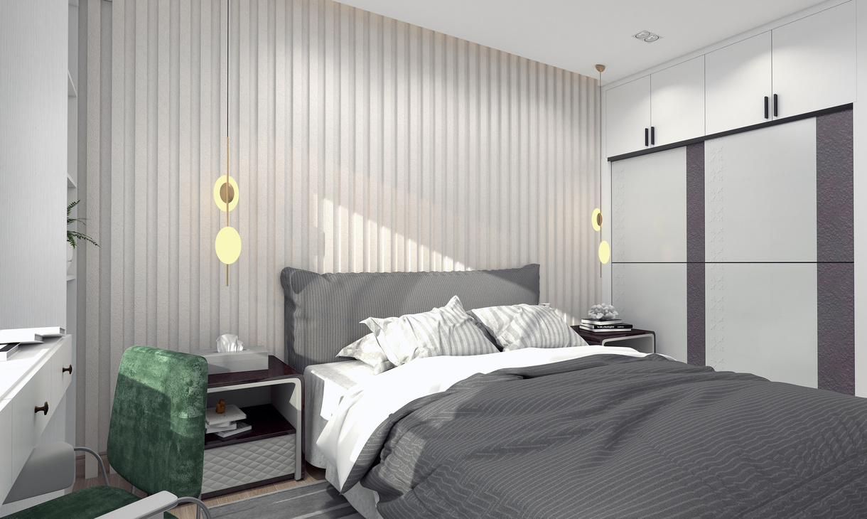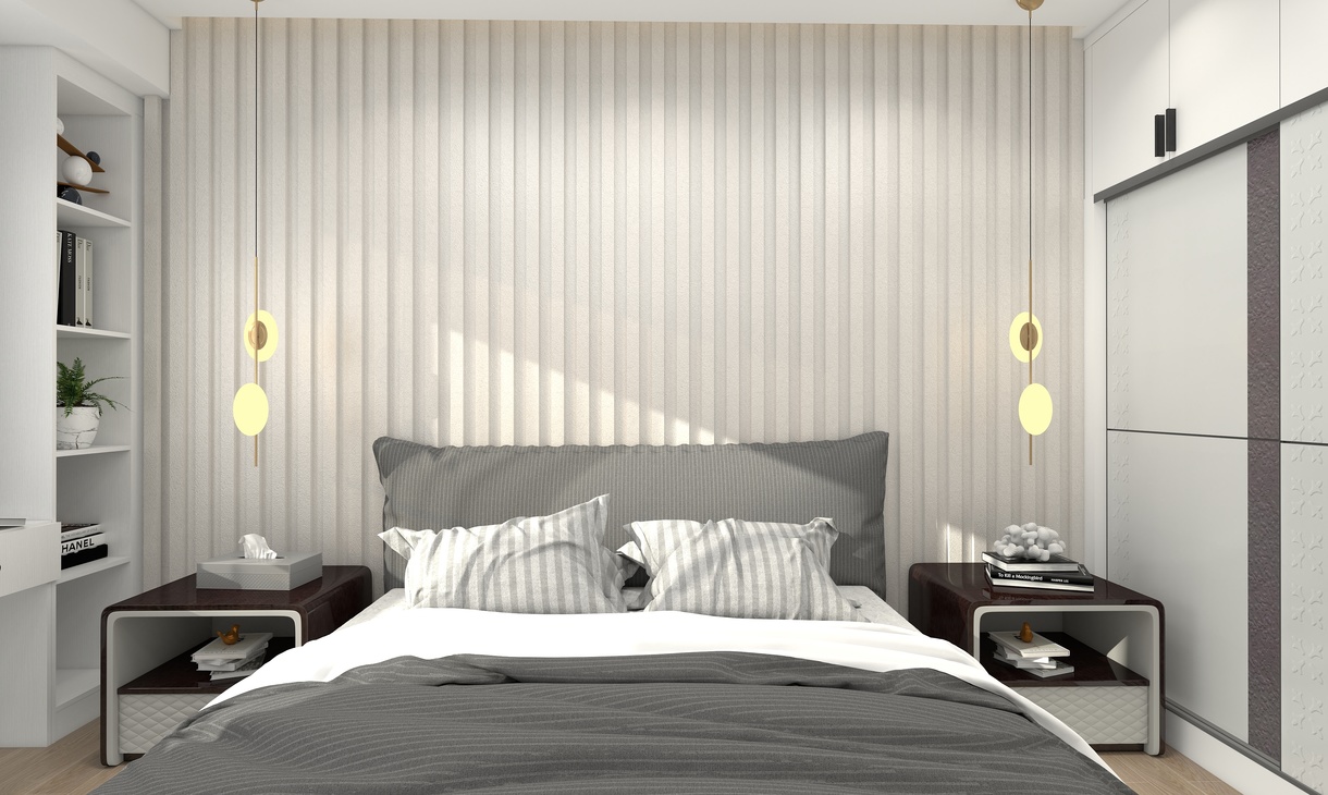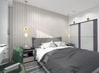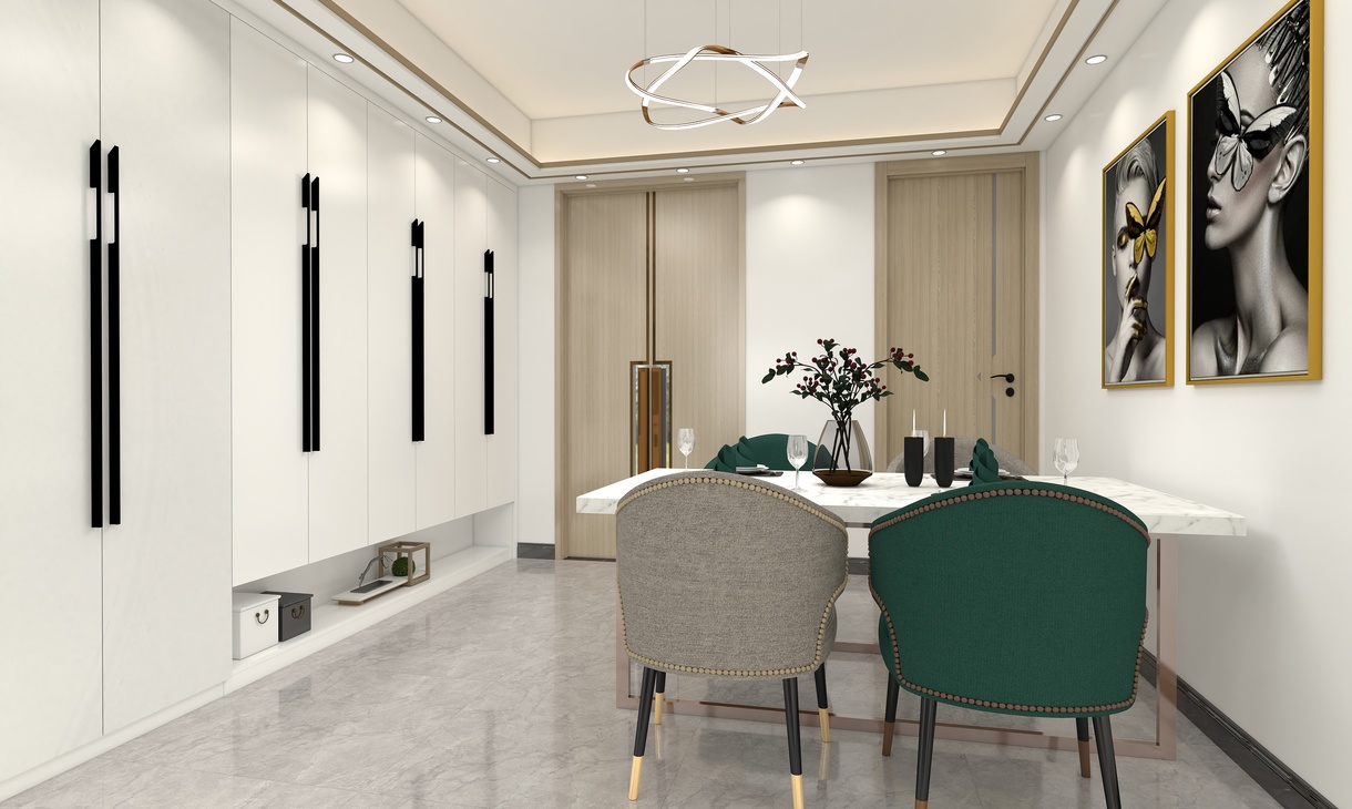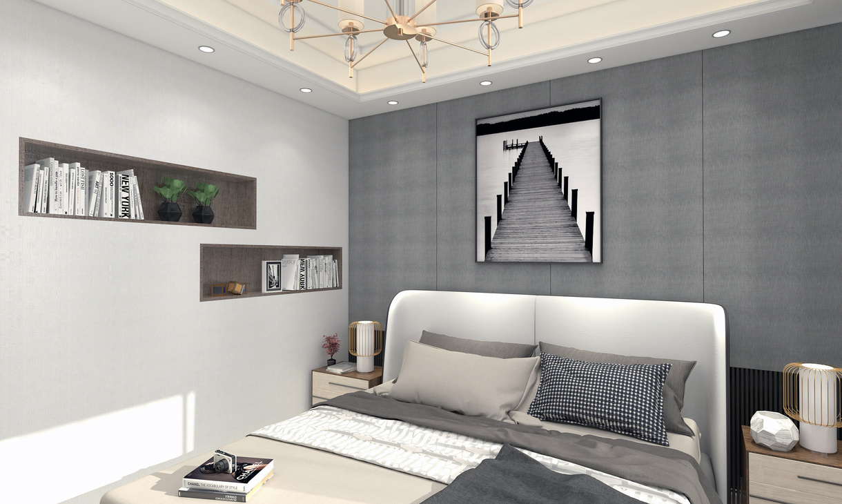 本案的主題為現(xiàn)代輕奢風(fēng)格,簡約俐落的質(zhì)材鋪敘與敞明大方的格局尺度在案例中設(shè)計(jì)師以陳設(shè)藝術(shù)品及金屬線條材質(zhì)來營造大氣、自然、輕奢的裝飾美學(xué)氛圍。墻面、地面、家具陳設(shè)等均以簡潔的造型、精細(xì)的工藝為其特征,強(qiáng)調(diào)品質(zhì)感和細(xì)節(jié)處理。在色彩搭配方面以冷色為主,溫馨的方桌桌花束、白色的搭毯、直觀大氣的金屬材質(zhì),帶著淡淡的隨意,隨著輕輕的希冀讓人感受到的是空間彌漫的溫馨與舒暢。臥室高雅自由的空間,充滿了唯美的想象。色彩搭配上灰白色為主基調(diào)色,在淺色的空間里點(diǎn)綴了鮮艷的黃色、冷淡的藍(lán)色,變得更加有活力性。設(shè)計(jì)師毫不吝嗇的用心,大到有氣勢感的沙發(fā)床,小到床頭背景的精致掛飾,都是經(jīng)過精心的搭配,完成業(yè)主心中對于浪漫情懷的解讀。