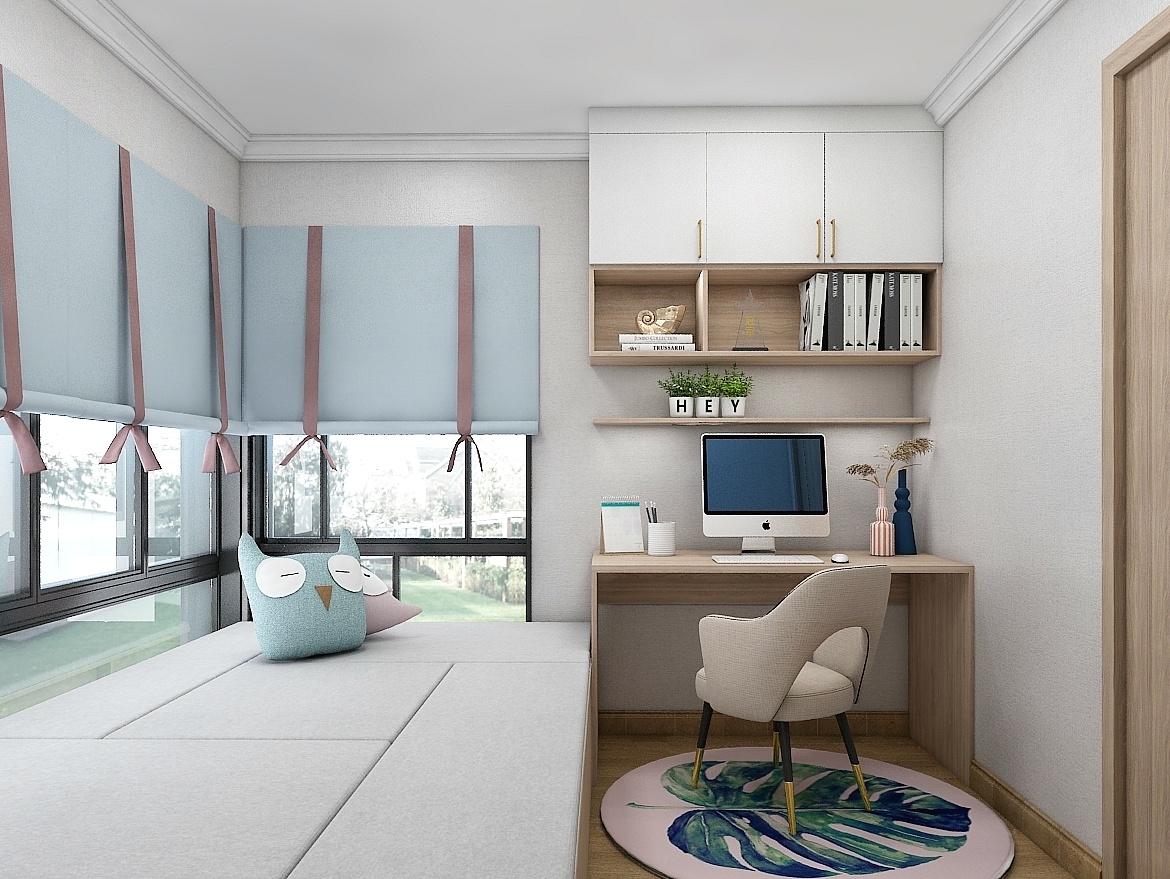 根據(jù)客戶需求整體風(fēng)格不呆板,但需要簡潔,所以在方案呈現(xiàn)中以暖色調(diào)調(diào)為基礎(chǔ),其中在主臥以灰藍(lán)色作為背景墻,體現(xiàn)出主人的素雅大方的品味;在兒童房又以粉粉色為背景墻,體現(xiàn)出可愛的少女心。其次就是書房,因?yàn)榭紤]是閱讀空間,所以在房間內(nèi)沒有太多的裝飾,簡單就好!