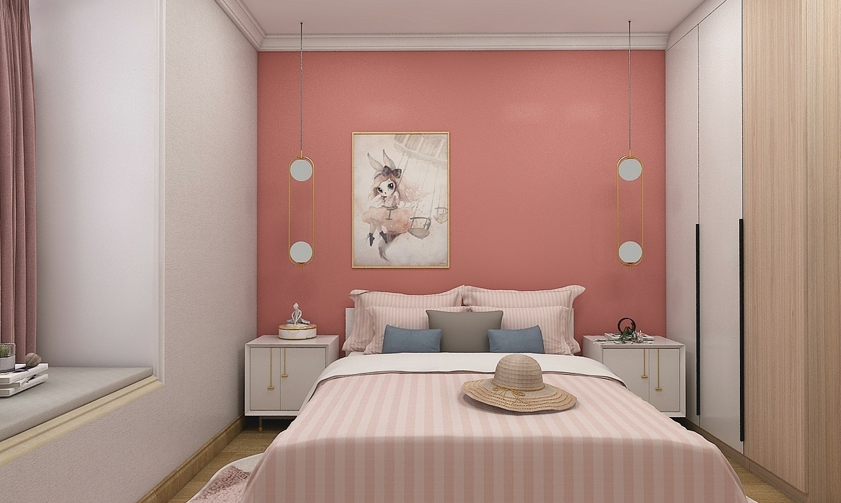 兒童房以粉粉色為背景墻,體現(xiàn)出可愛的少女心